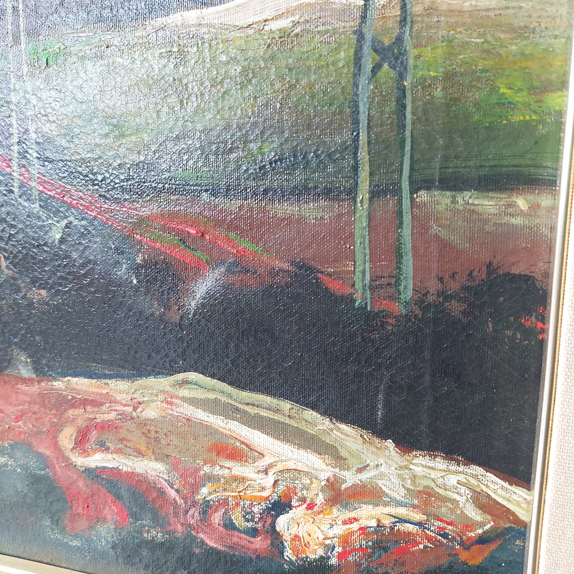Quadro paesaggio firmato Eligio Egitto 77 cornice legno cm93,5x73