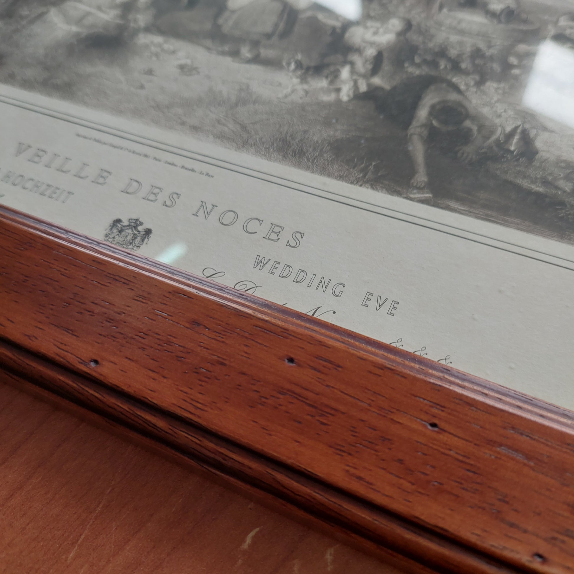 Quadro stampa antica "Le veille des noces" peint par h.anton dieffenbach grave par amedee & eugene varin. Misure cm41x34