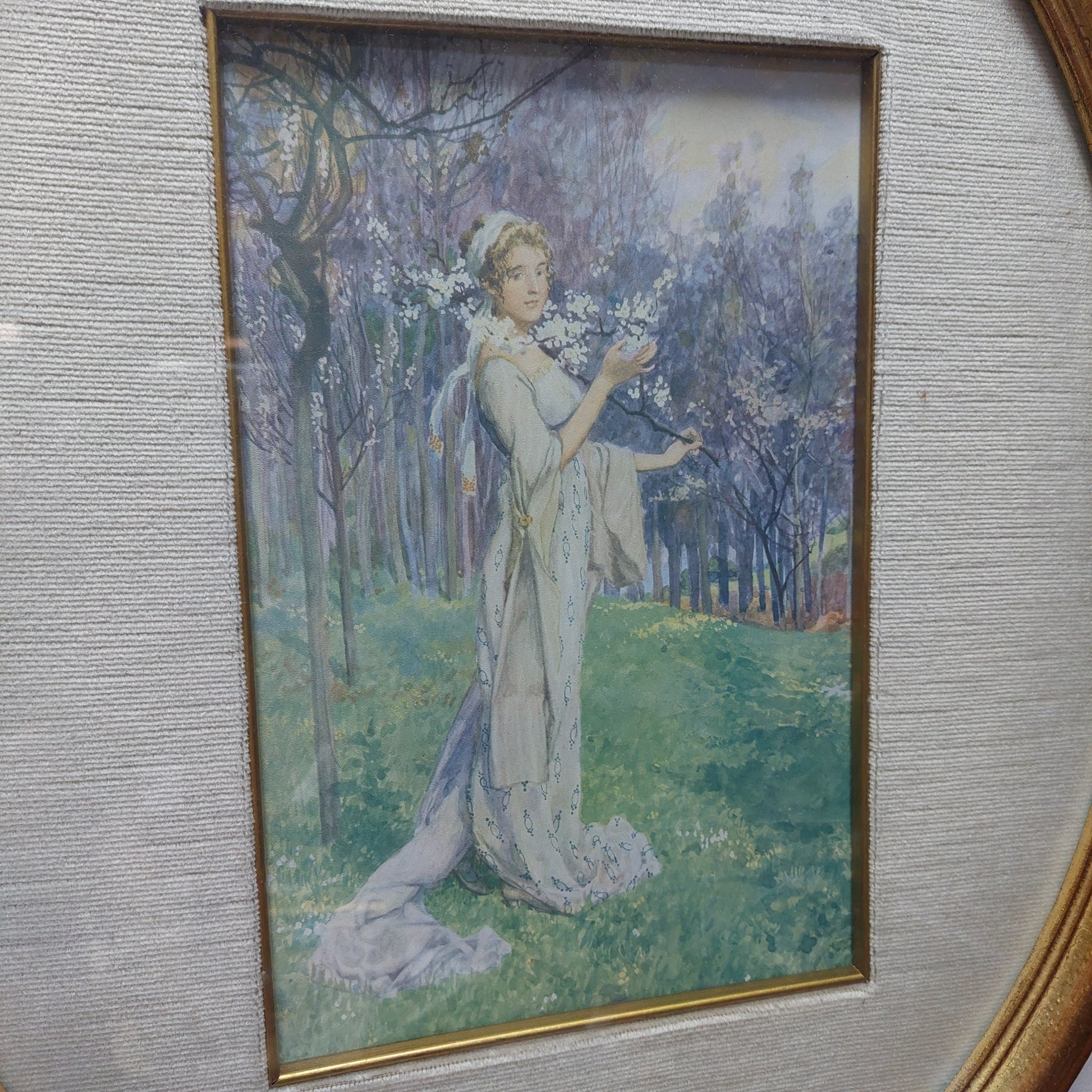 Quadro Stampa Dama Art N70,00 €ouveau Cornice Ovale Legno Oro