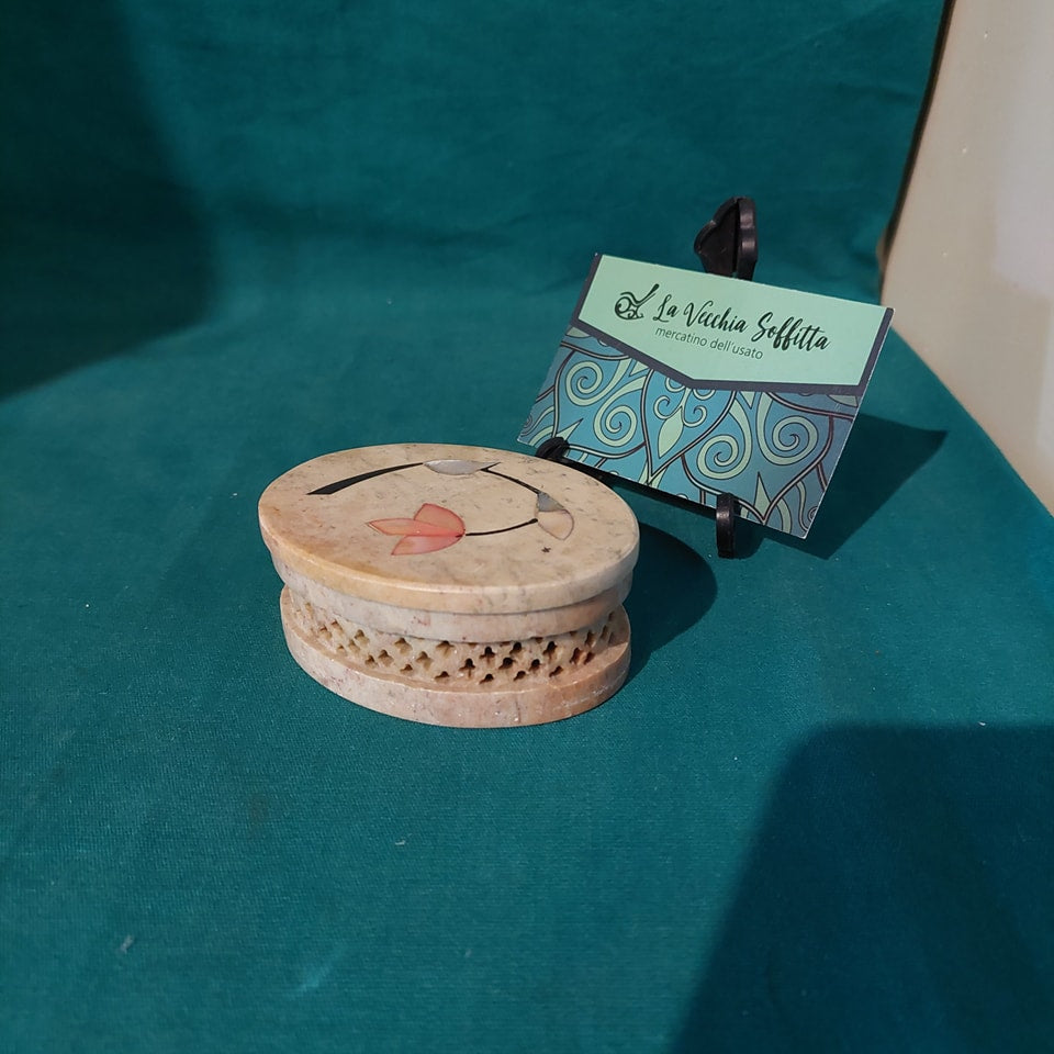 Scatolina Indiana Pietra Intagliata Intarsi Madreperla Cm8x6x3,5