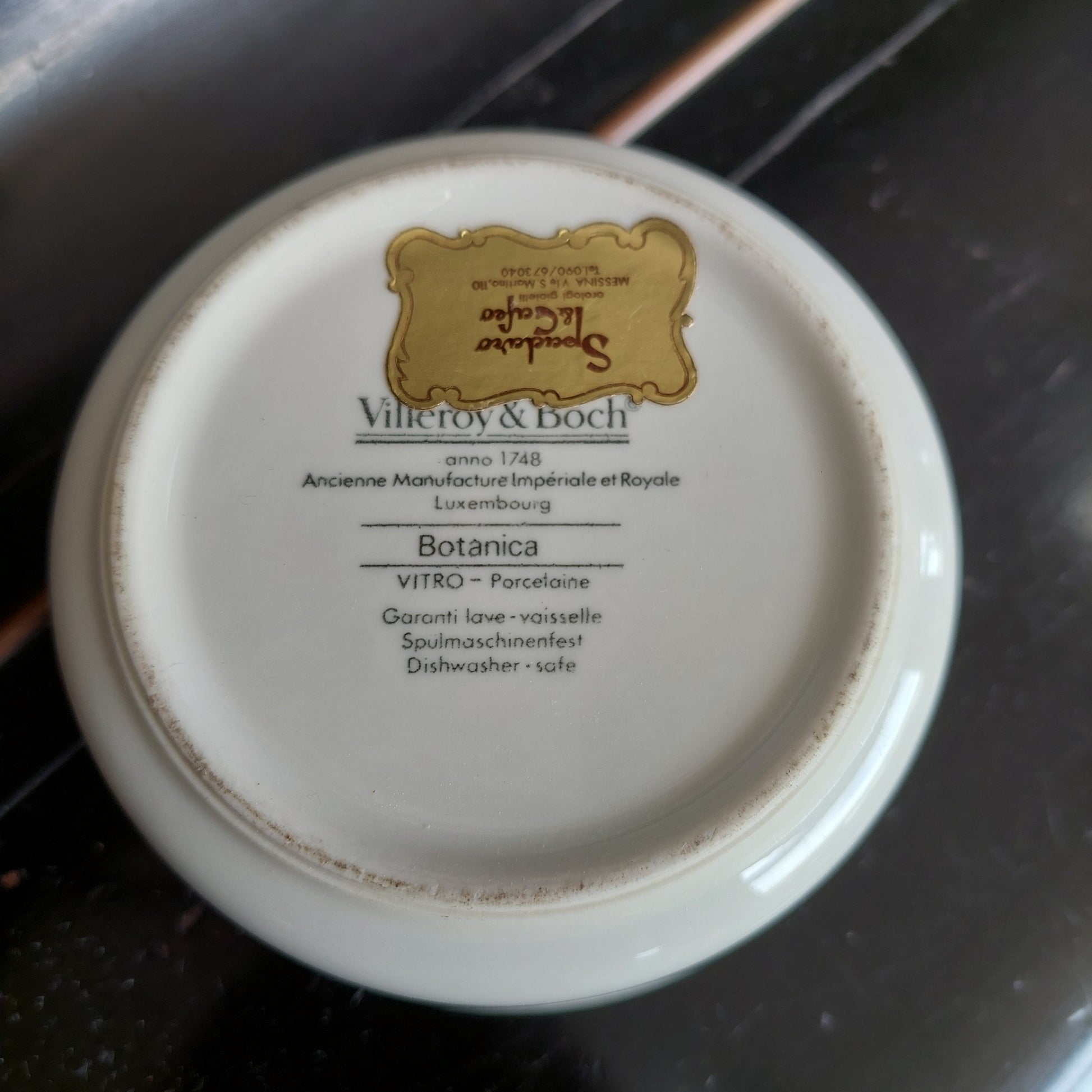 scatolina porcellana Villeroy & Boch serie Botanica, vitro-porcelaine decoro Lathyrus tuberosus d10,5x5h