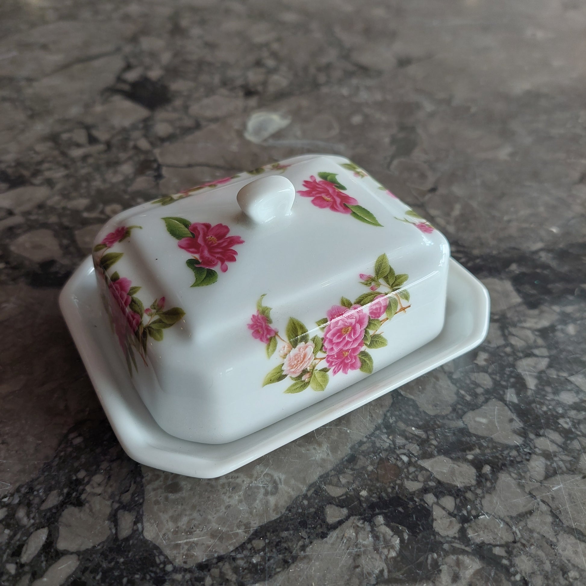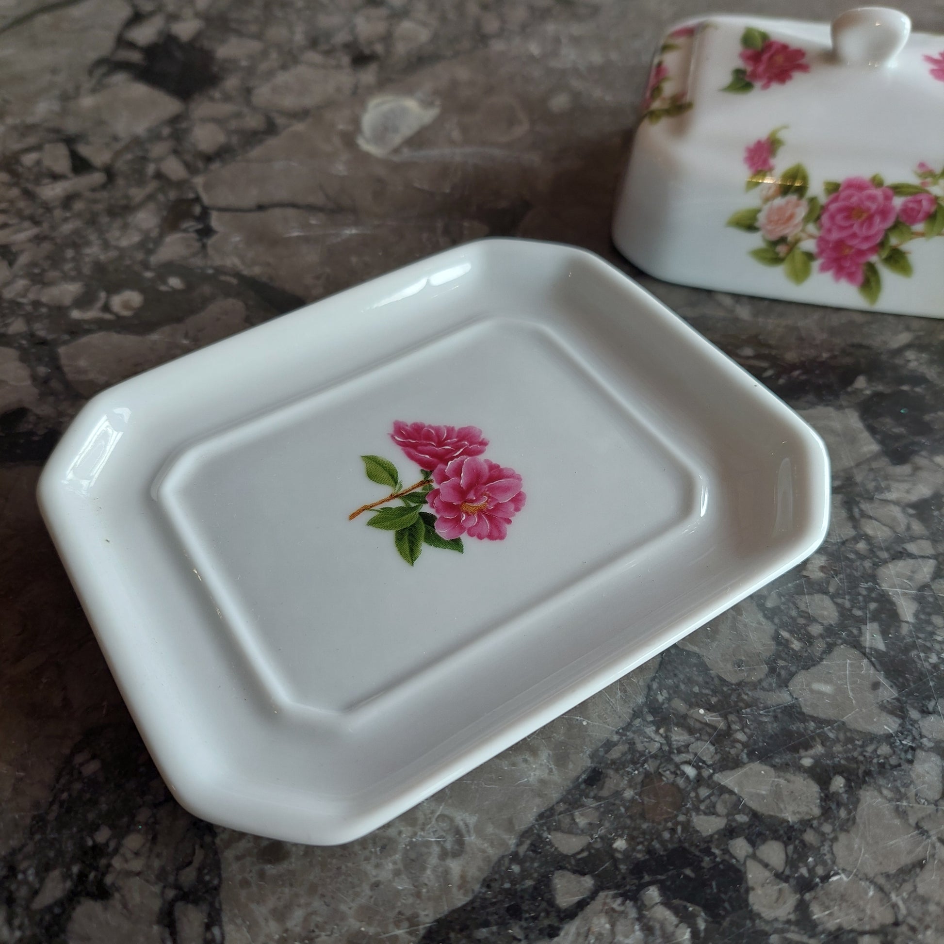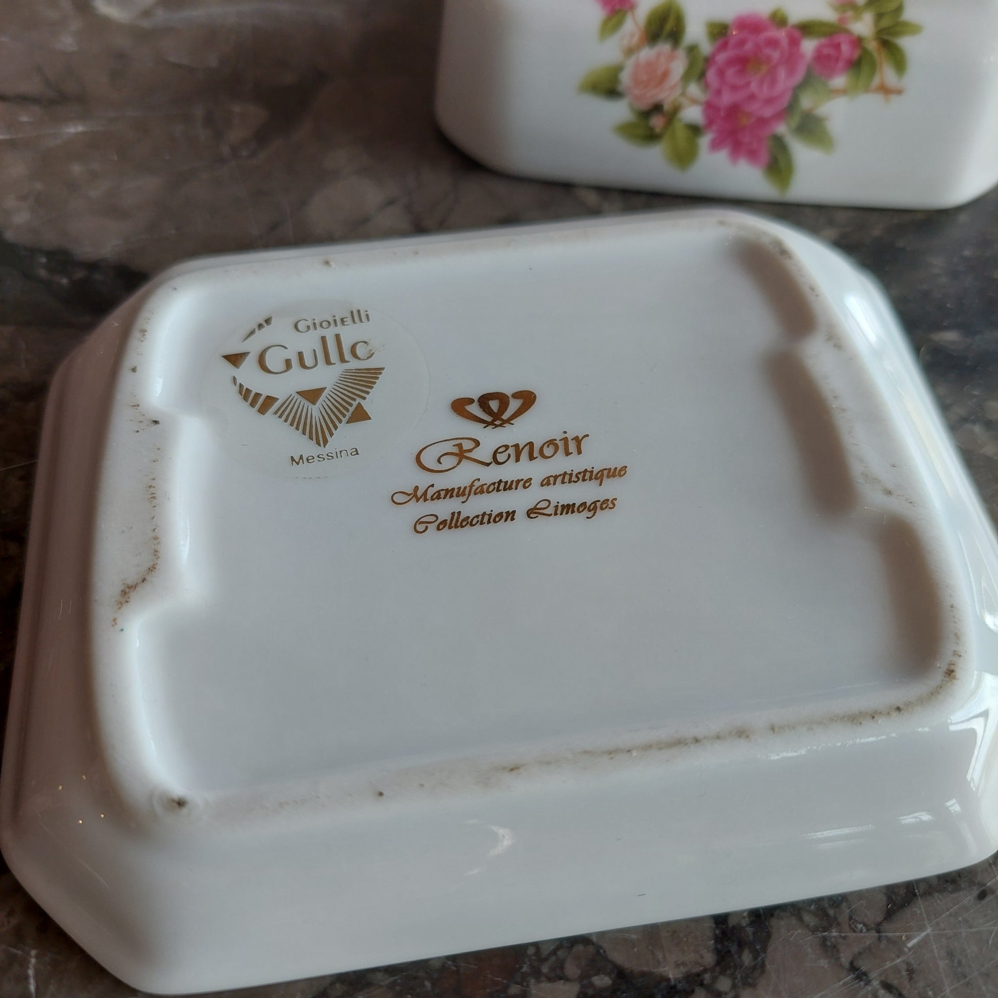 scatolina tipo portaburro porcellana Renoir Manifacture artistique collection Limoges decoro rose cm10,5x8,5x5h
