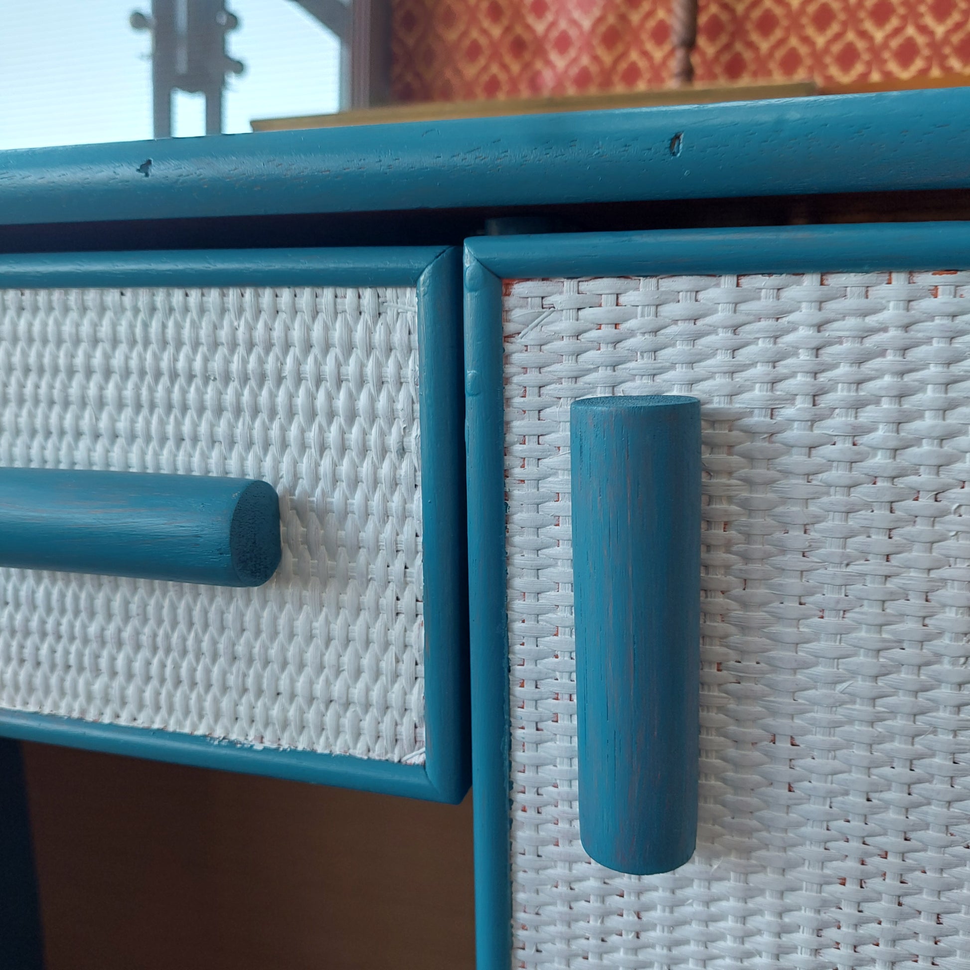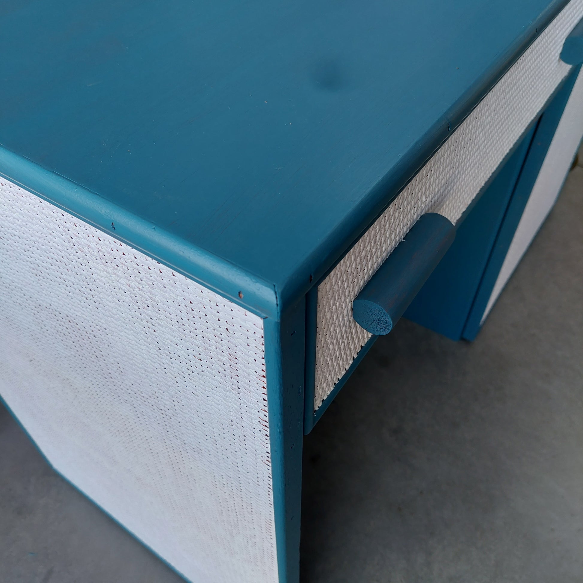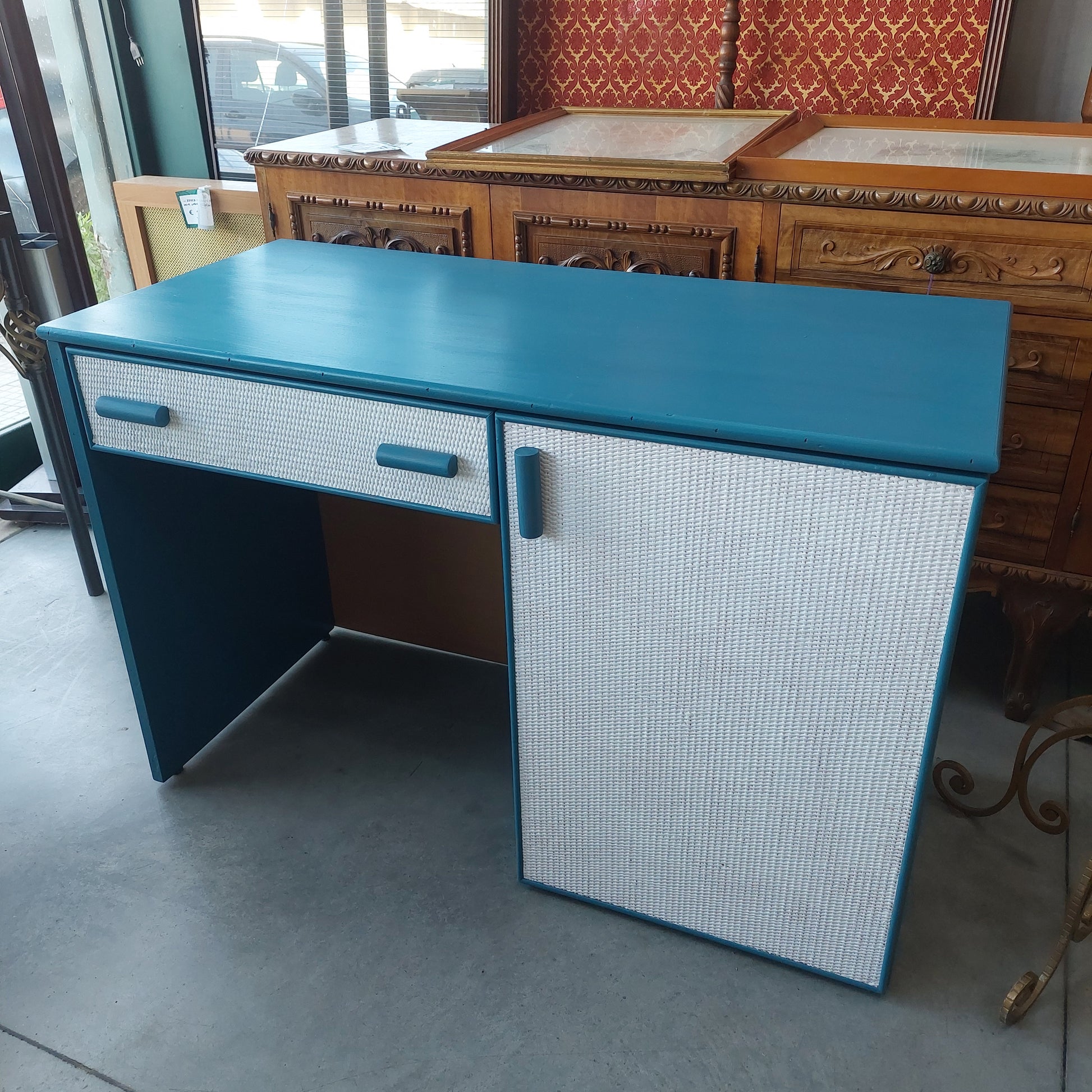 Scrivania Bambù/vimini bicolore bianca e blu 1/cassetto 1/sportello Cm122x57x80h