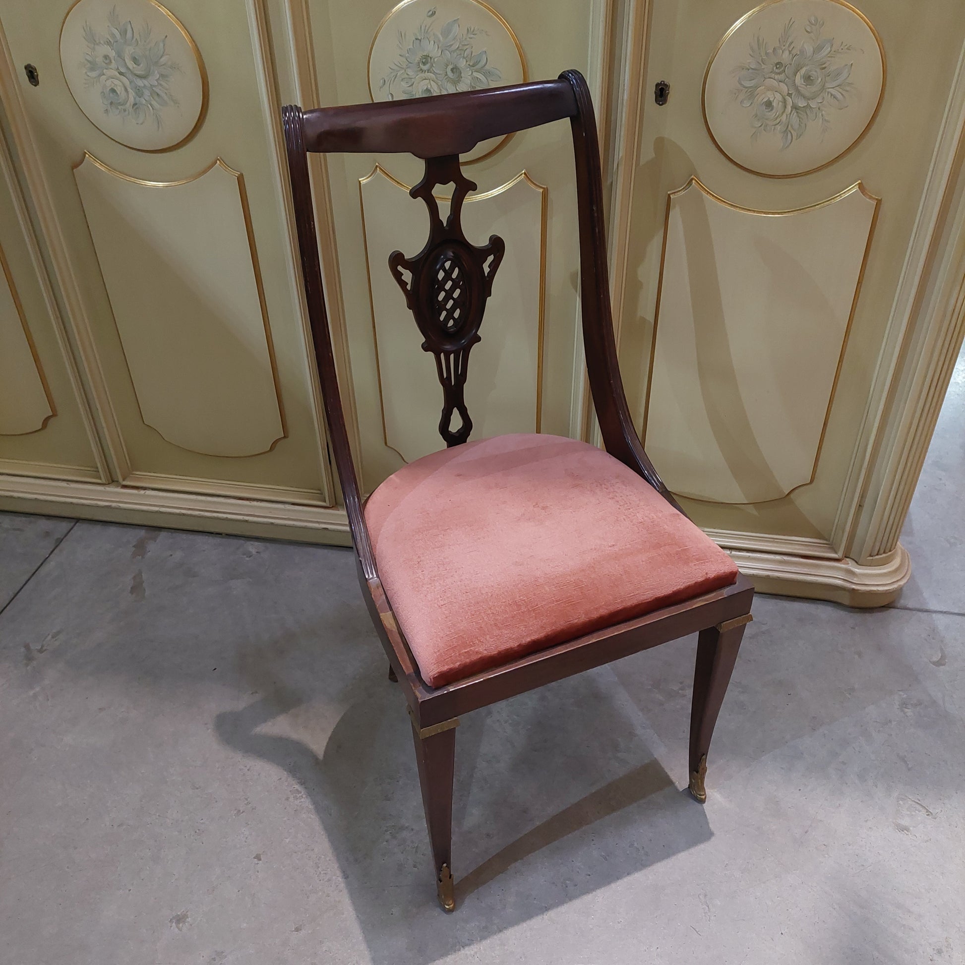 set composto di 6 sedie mogano con tappezzeria in velluto rosa