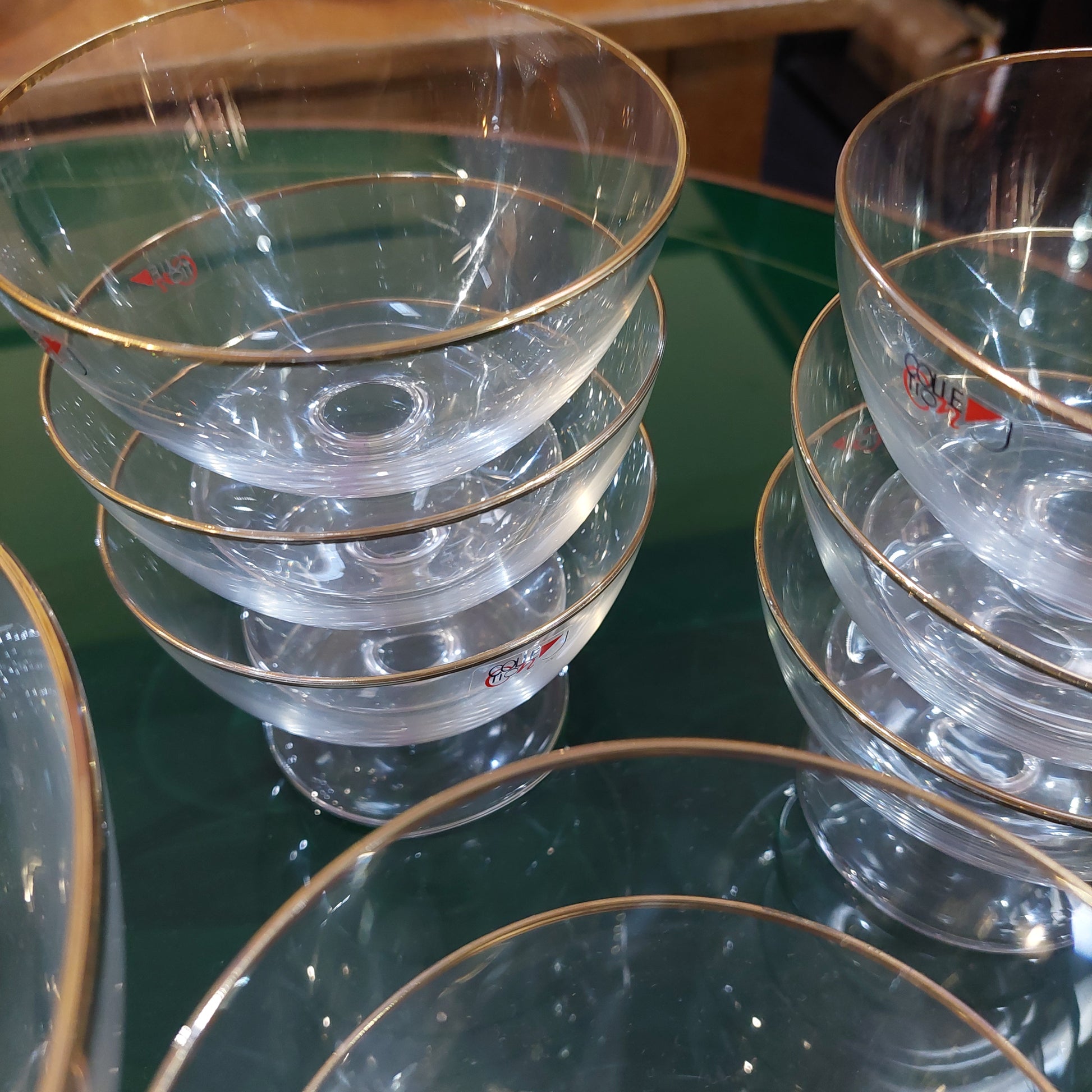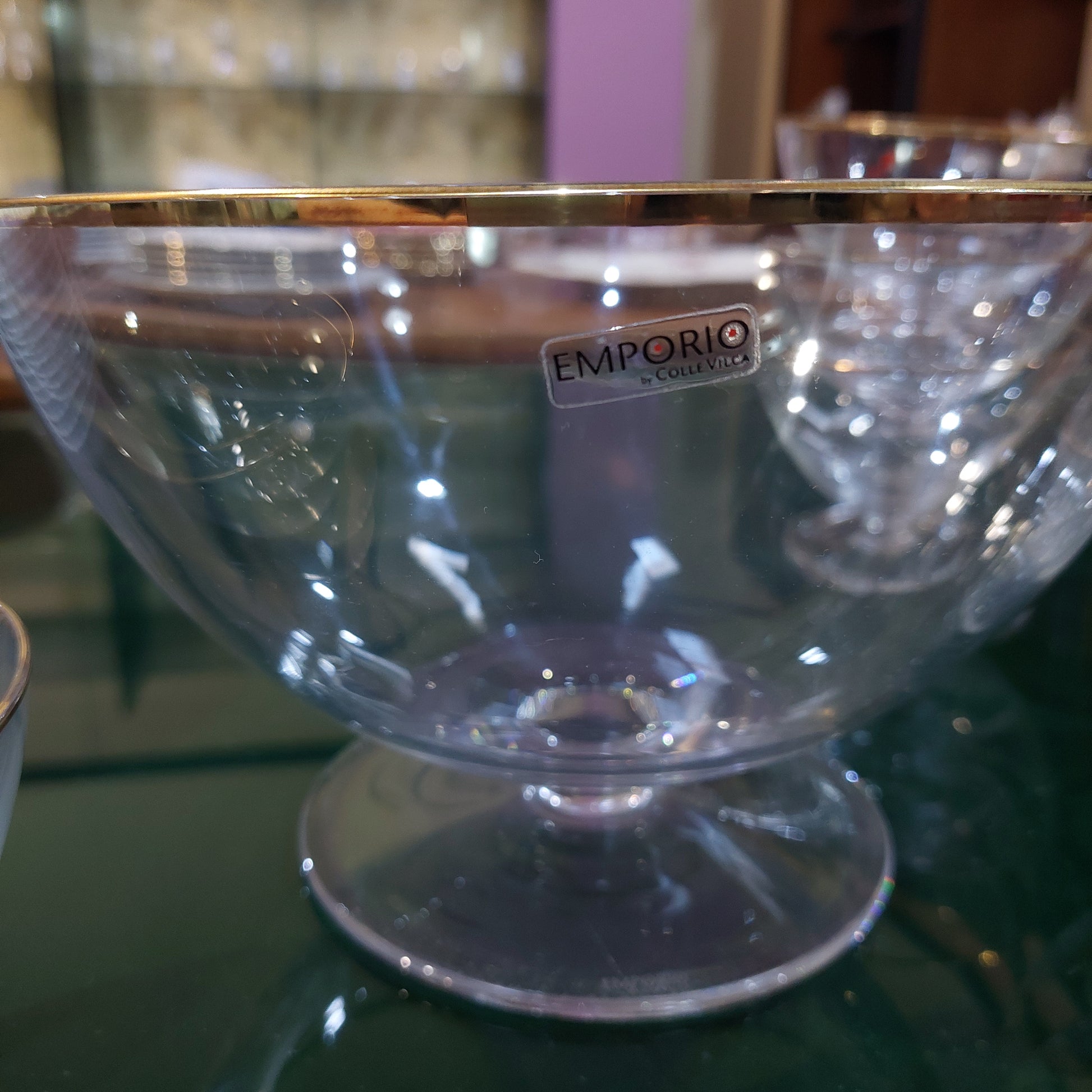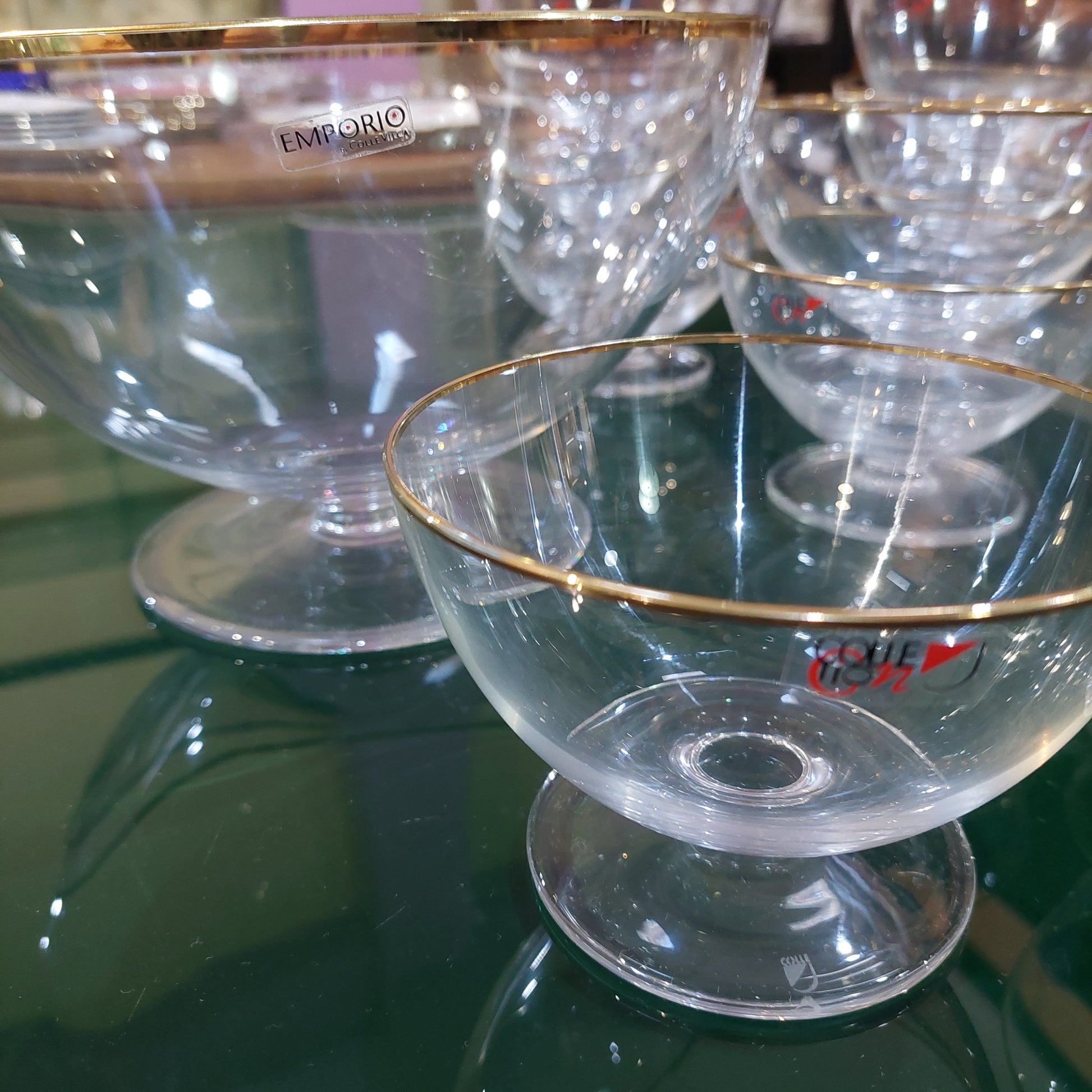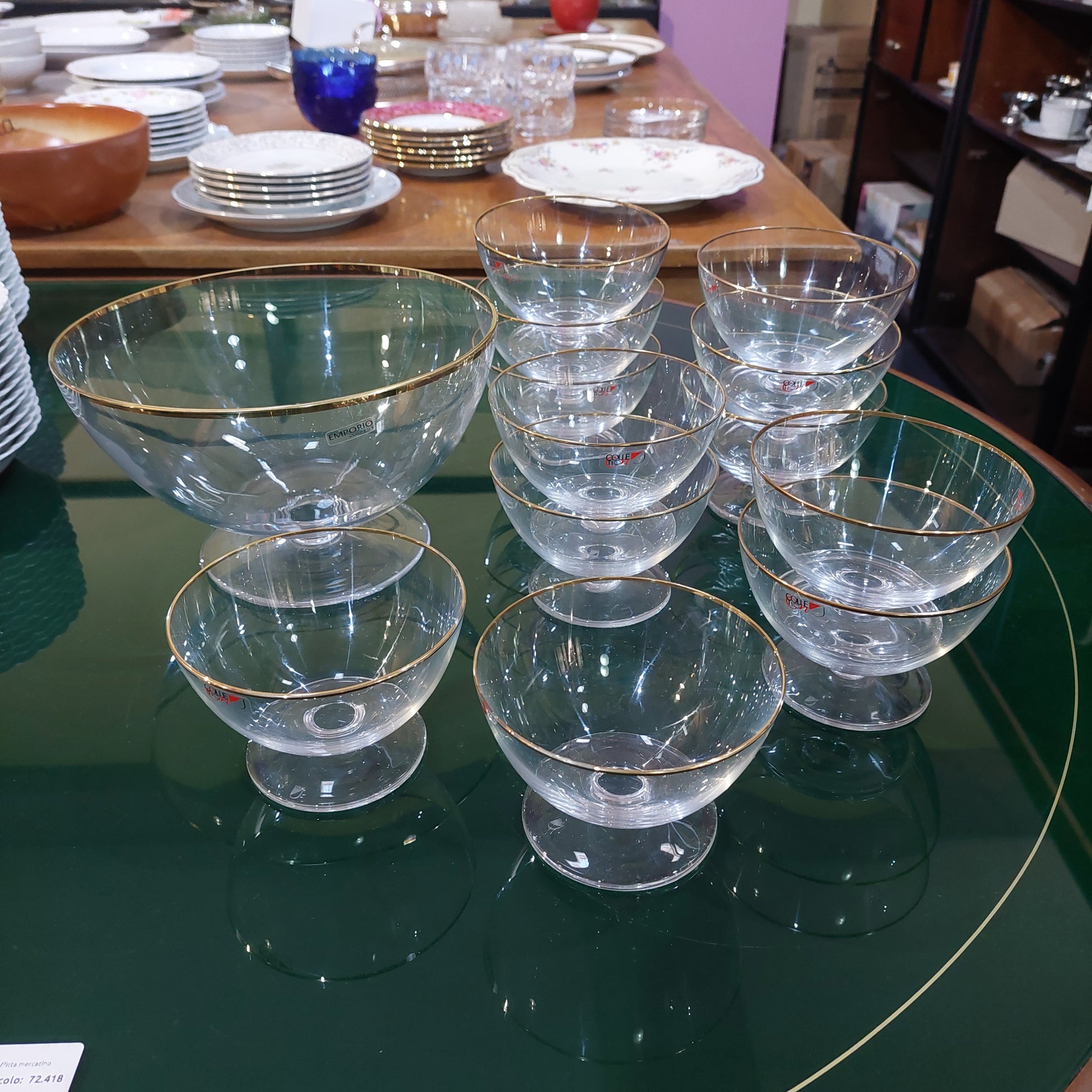 SERVIZIO MACEDONIA/PUNCH + CIOTOLA +12 COPPETTE cristallo EMPORIO COLLE VILCA bordo oro zecchino