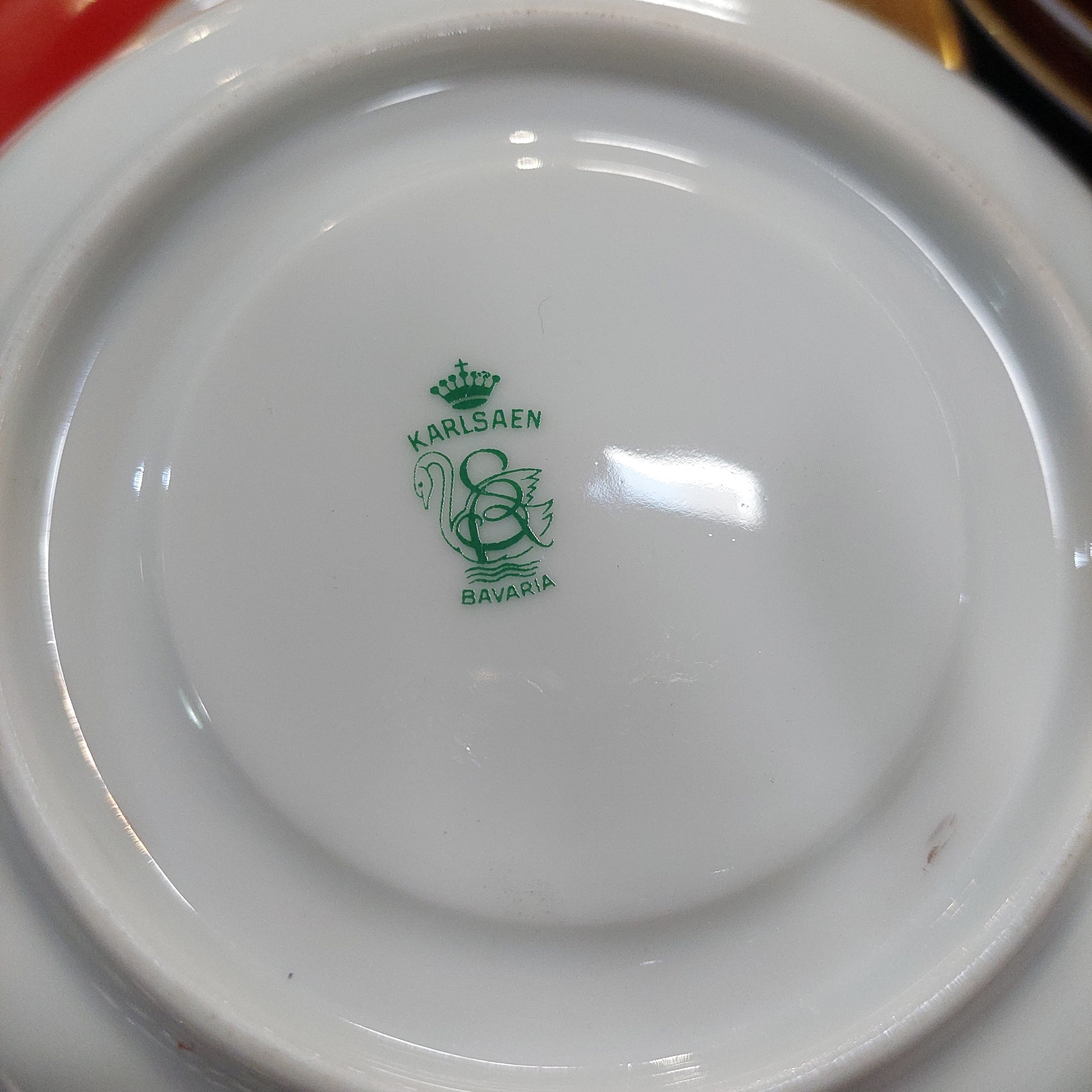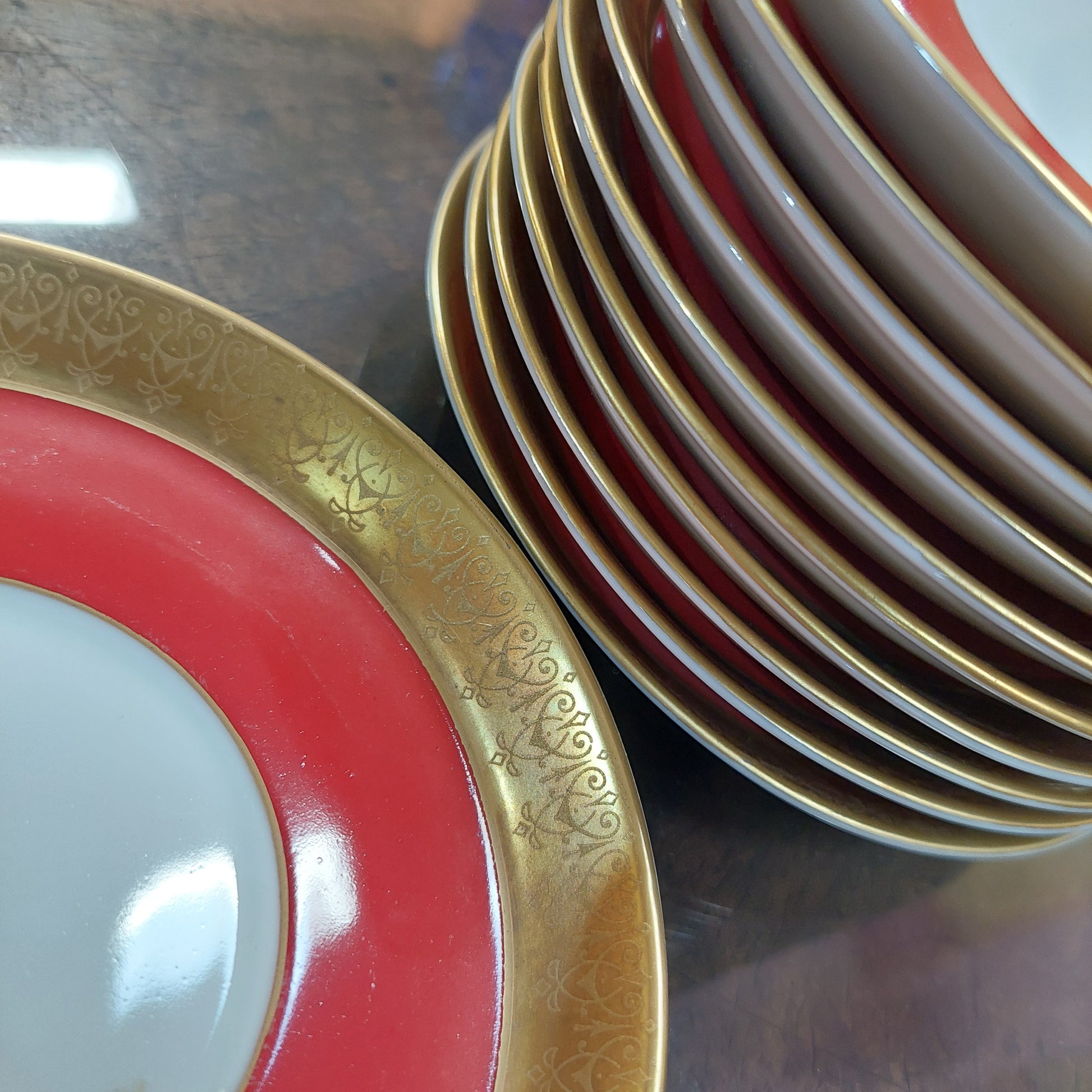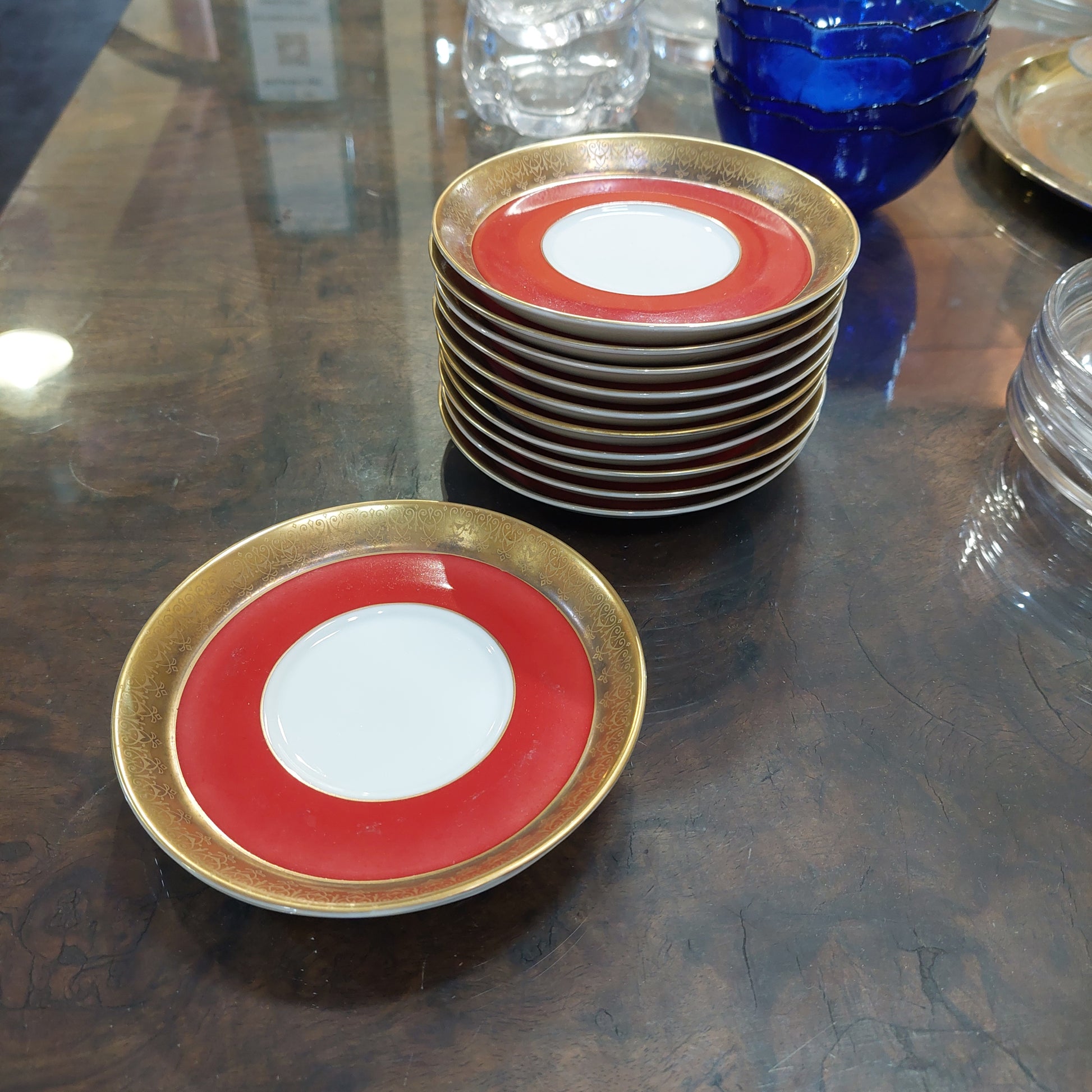 Set/12 piattini caffè porcellana* Bavaria Karlsaen colore rosso bordo oro zecchino