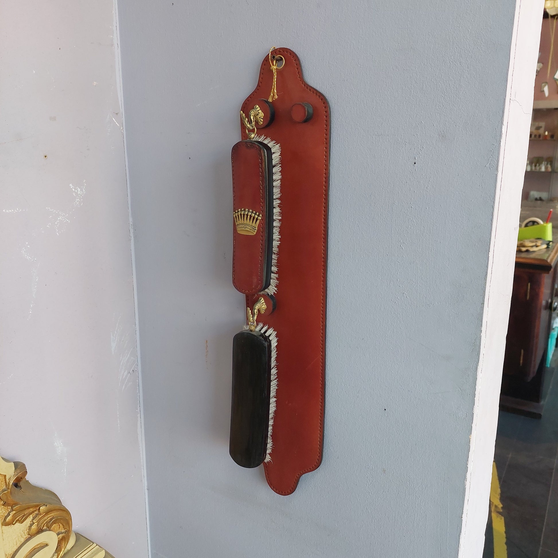 Set/2 spazzole pulisci scarpe in cuoio da parete vintage