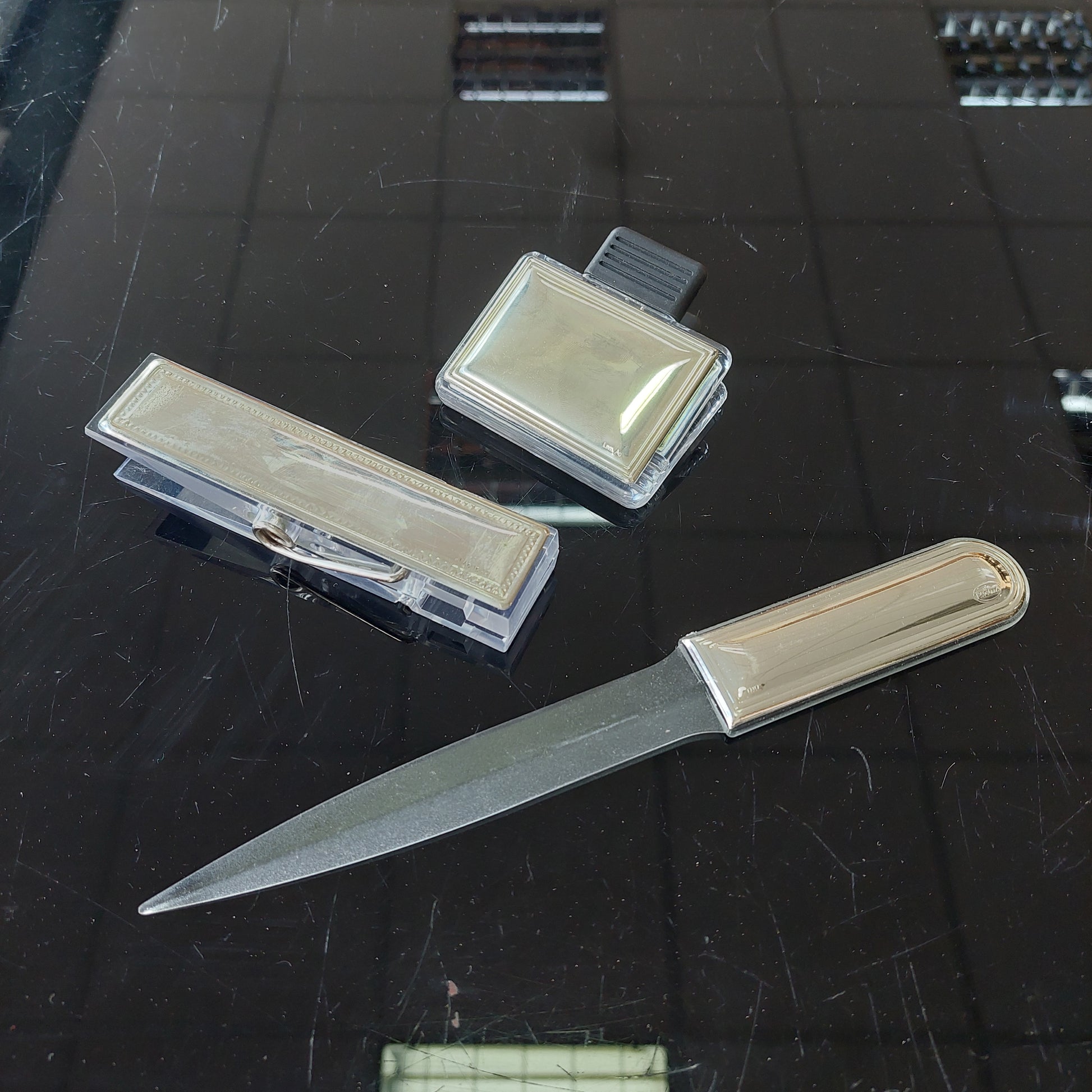 set/3 pezzi da scrivania plexiglass / argento