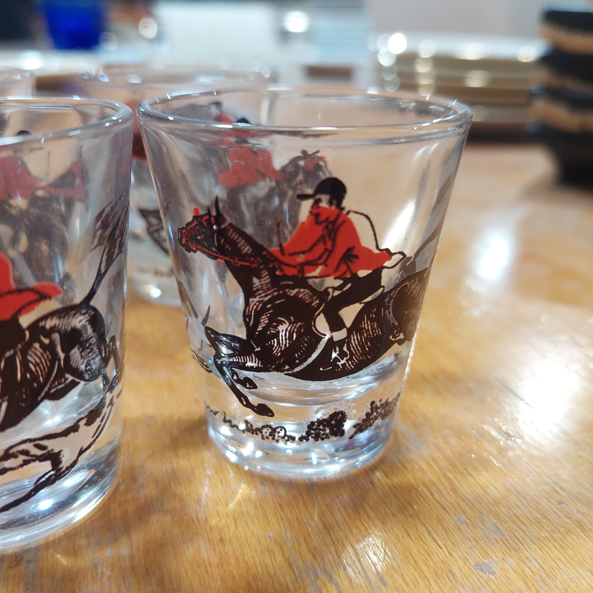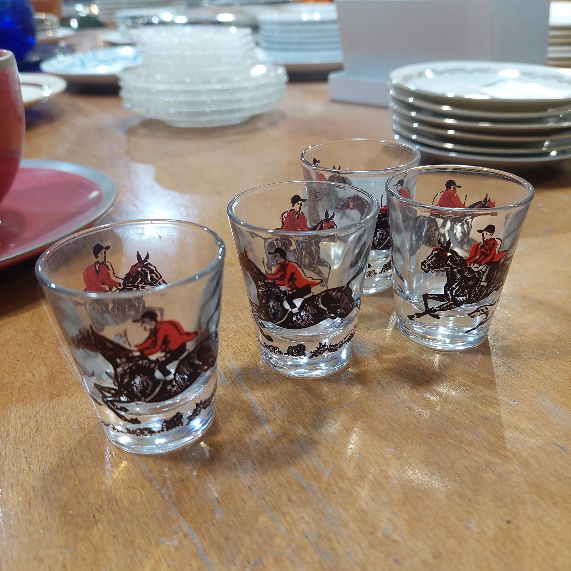 Set/4 Bicchierini Vetro Scene Di Caccia
