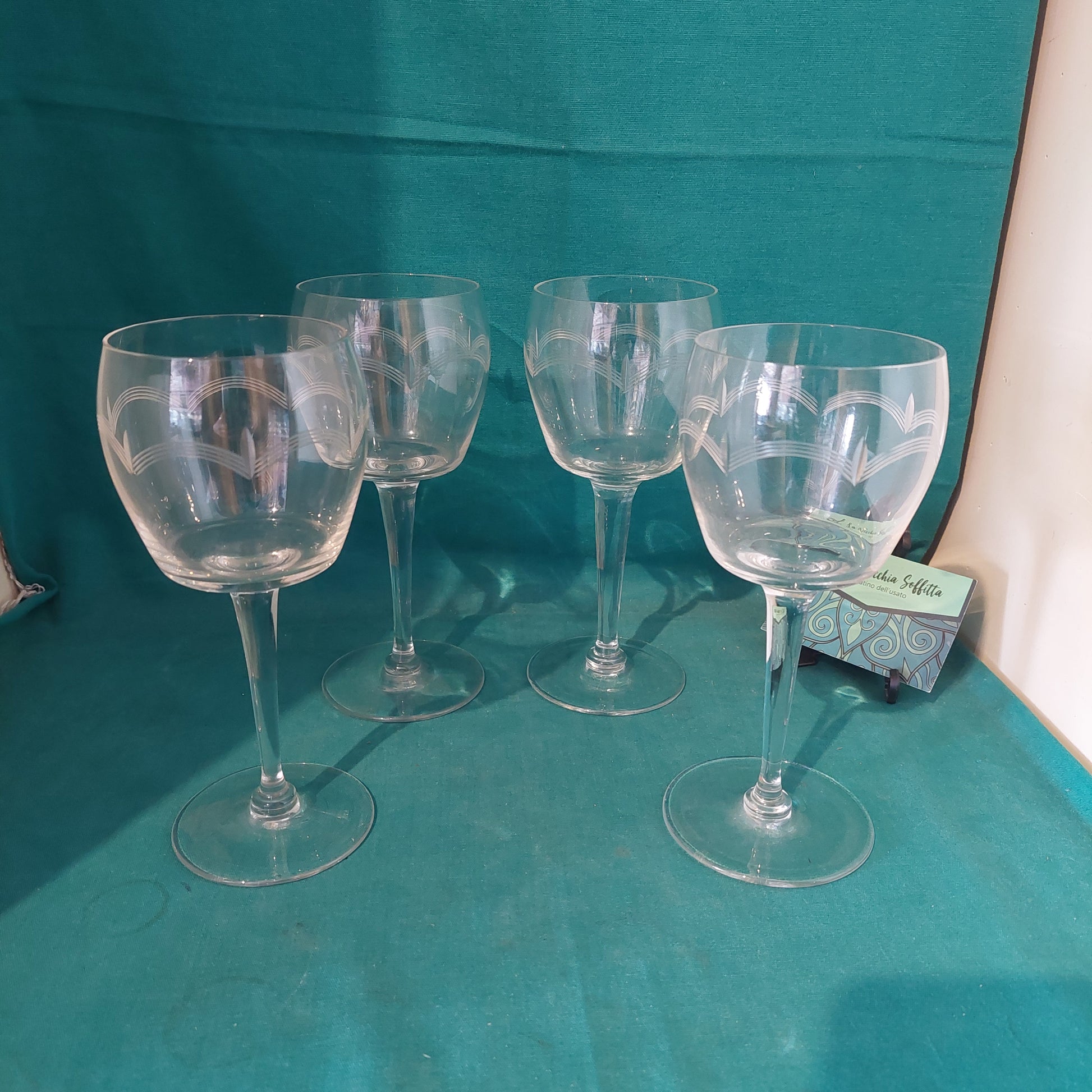 Set/4 Calici Cristallo Serigrafato Anni '50