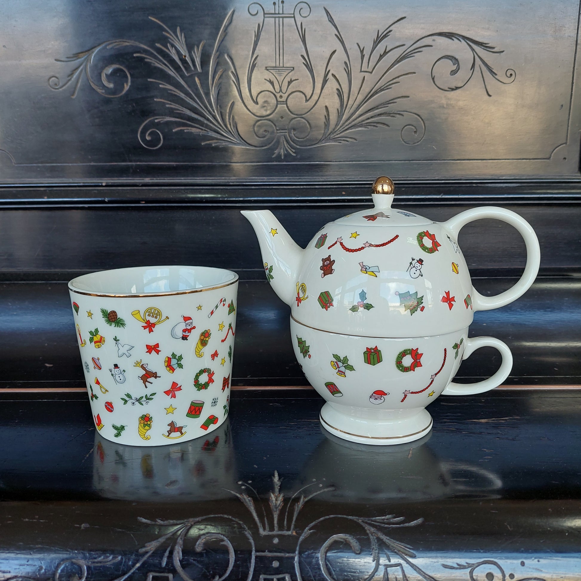 Set/tazza Teiera E Portabiscotti Porcellana* Taitù Noël