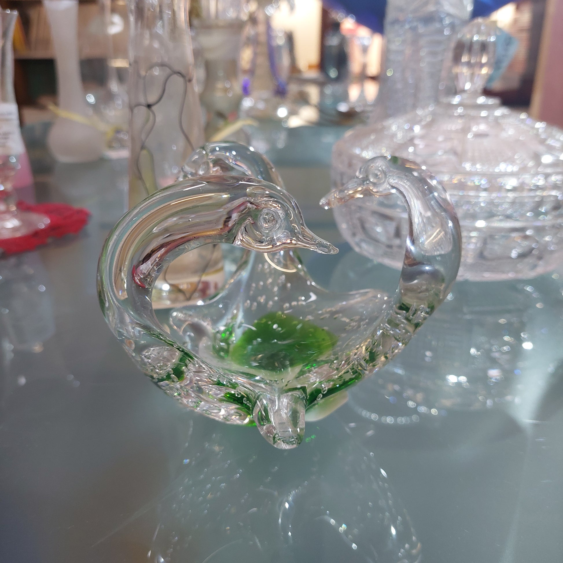 Soprammobile Posacenere Cigni Vetro Di Murano Verde anni 60 d11x11h