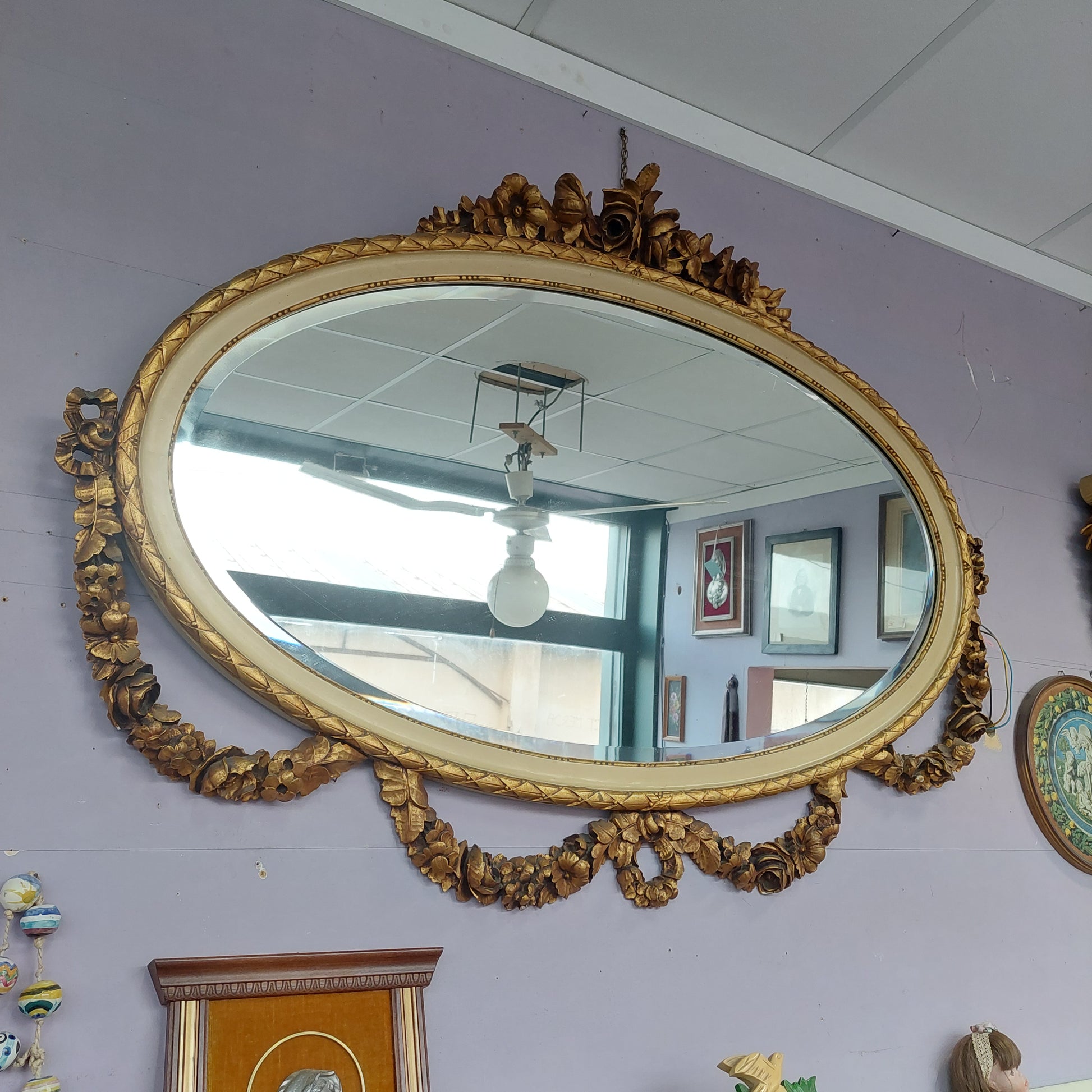 Specchio Cornice* Ovale Legno Oro St. Luigi Xvi