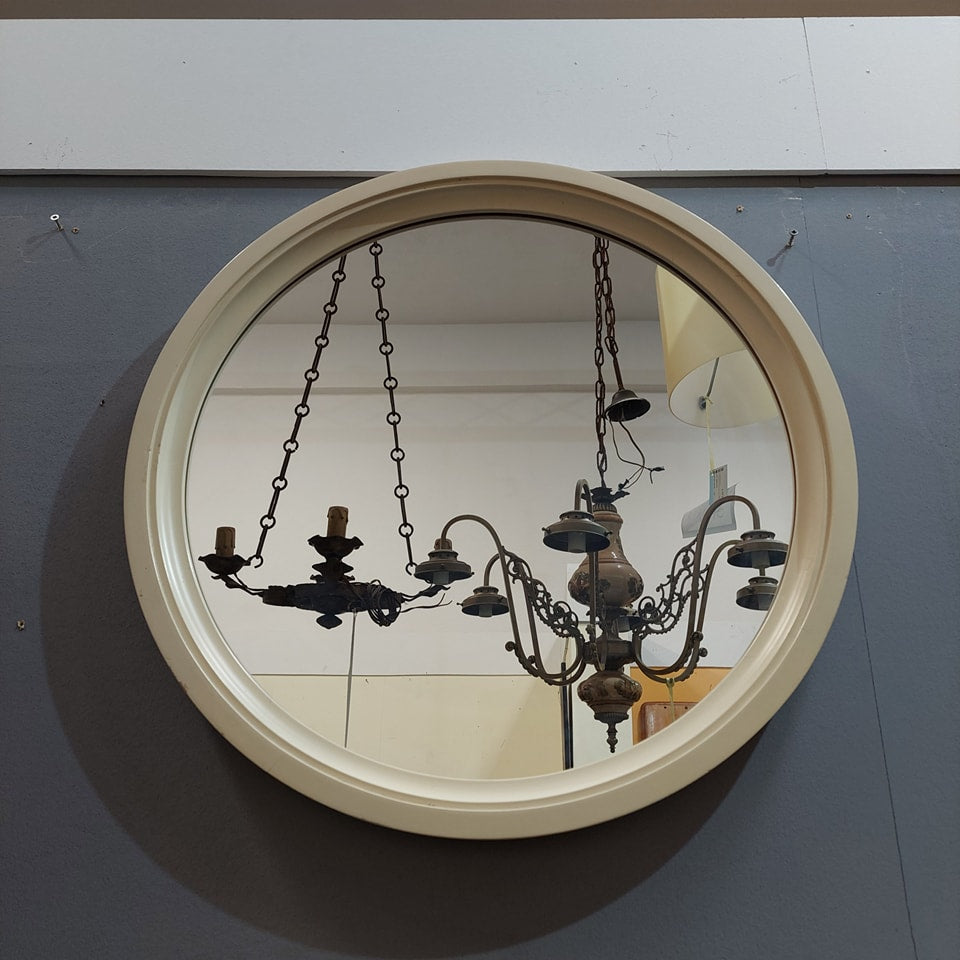 Specchio Legno Bianco Anni '70 D60