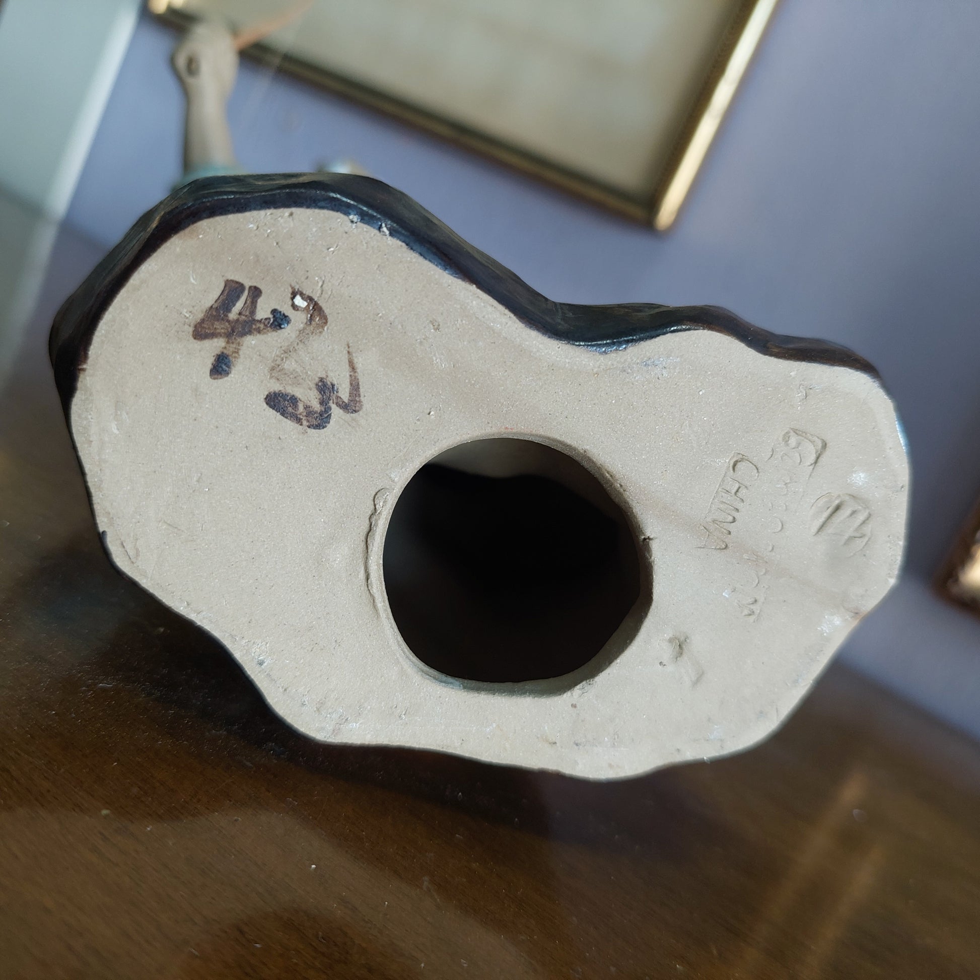 Statuetta pescatore porcellana* smaltata cinese con canna da pesca e pesciolino. cm10x6x17h