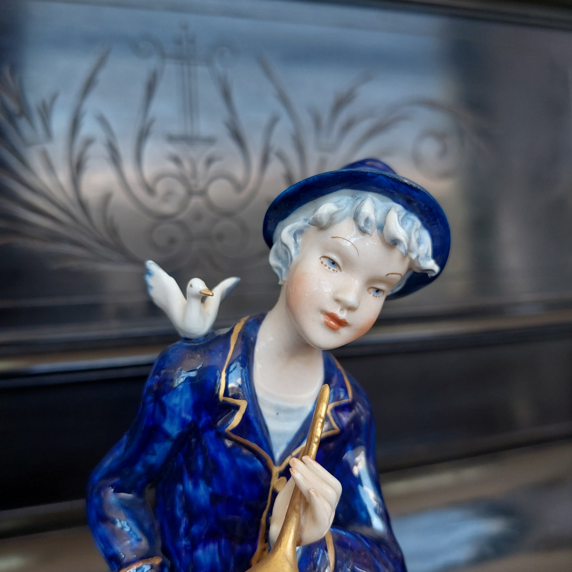 STATUINA SCULTURA RAGAZZO CON FLAUTO PORCELLANA CAPODIMONTE CVS firmata CESARE VILLARI