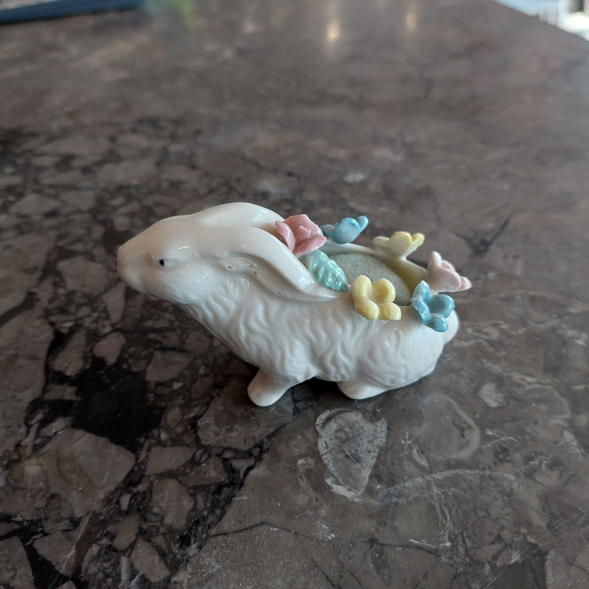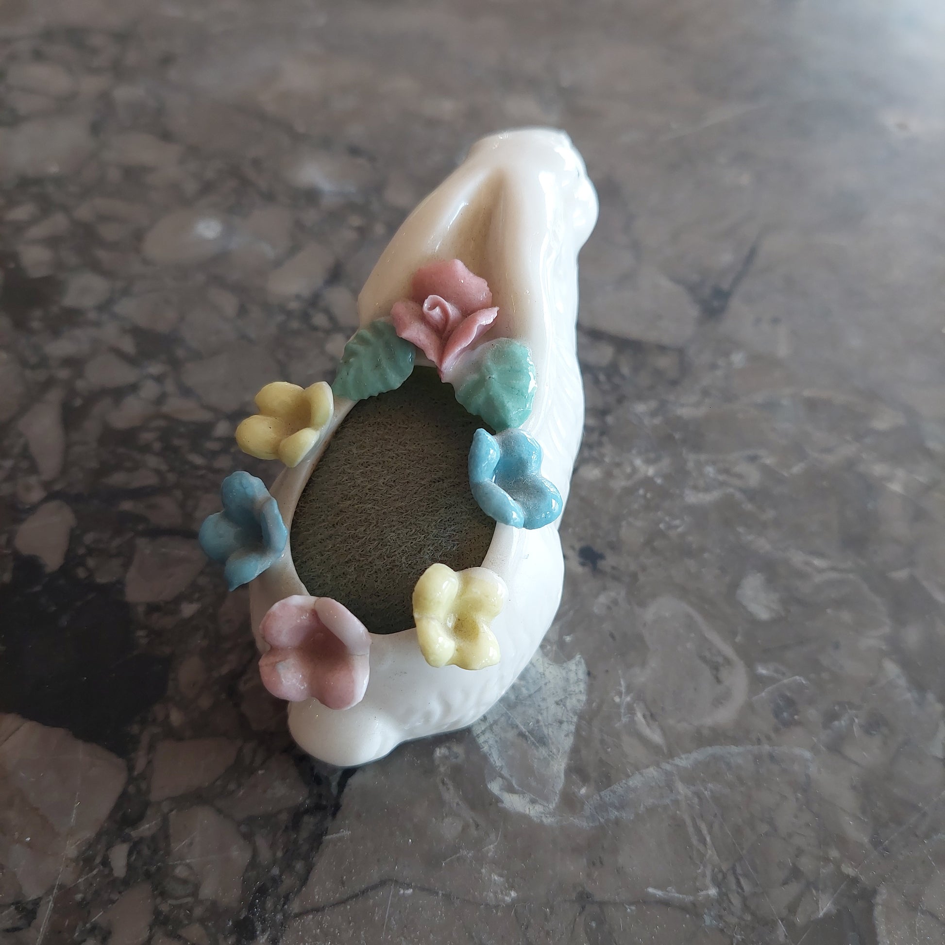 Statuina porta aghi coniglietto con fiorellini porcellana cm10x5x5h