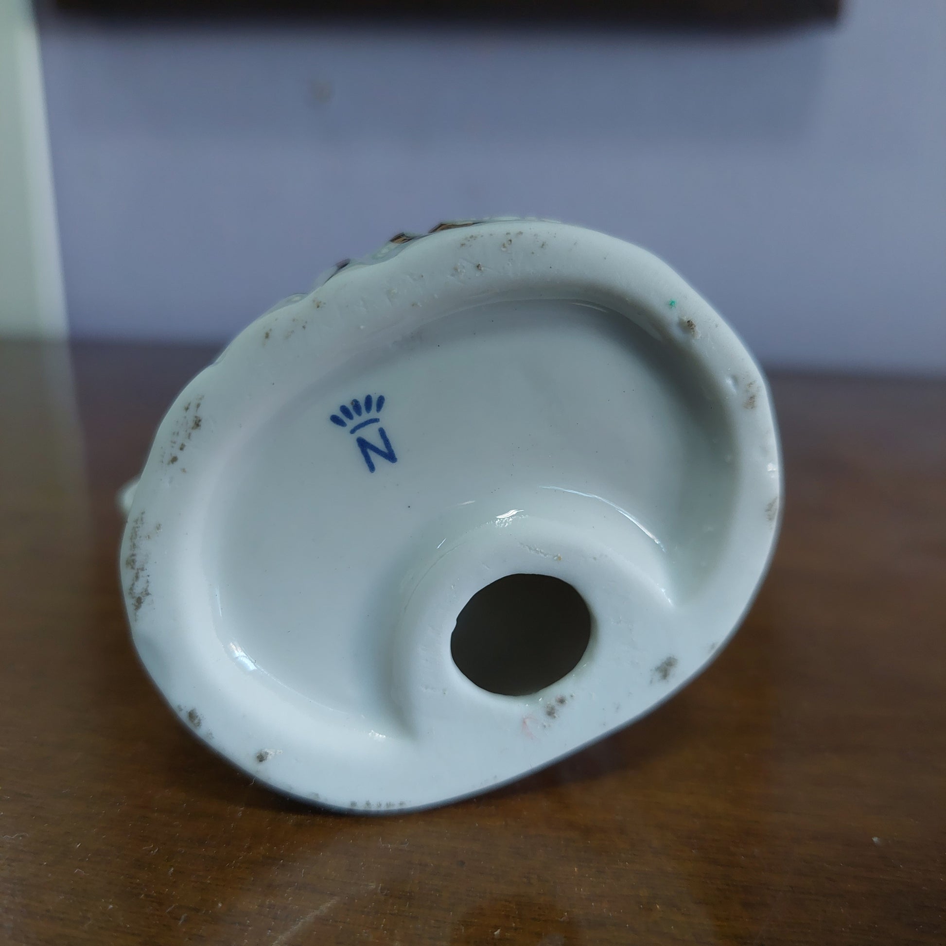 statutina damerino musicista con violino porcellana capodimonte decori oro e blu h14,5