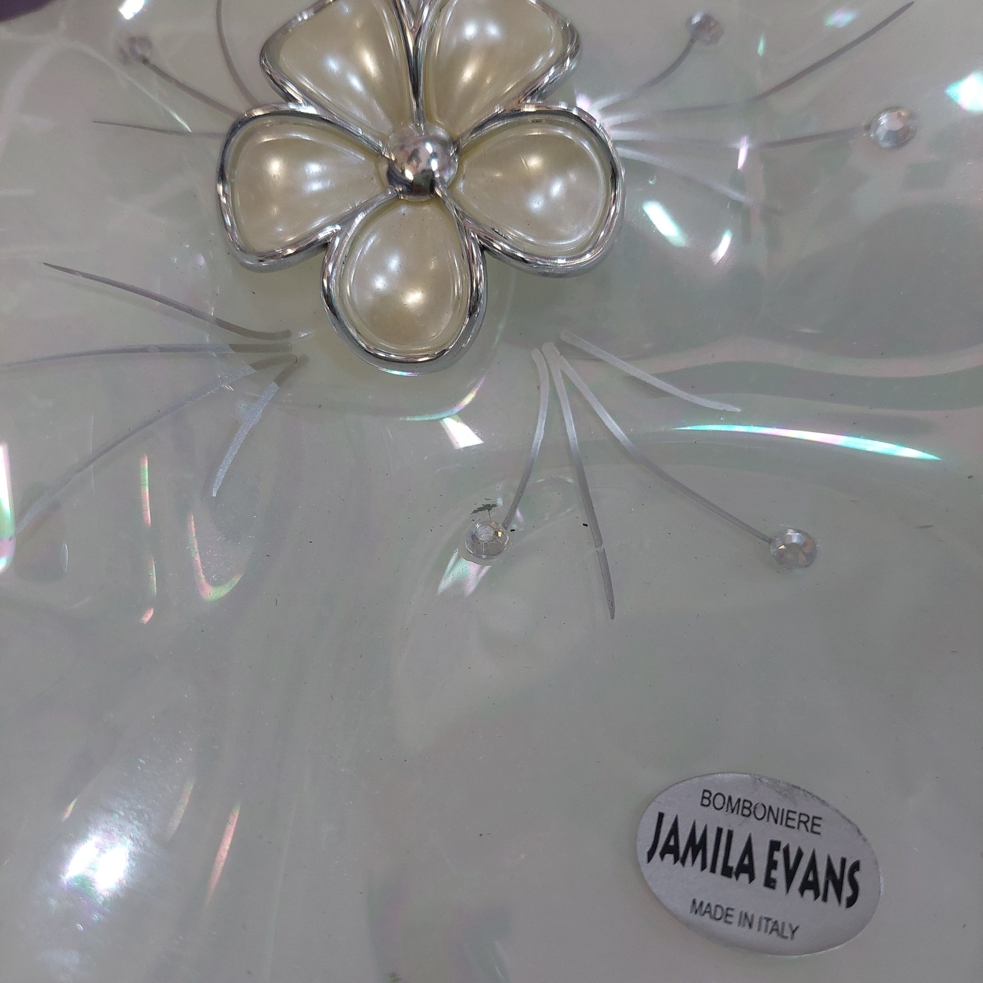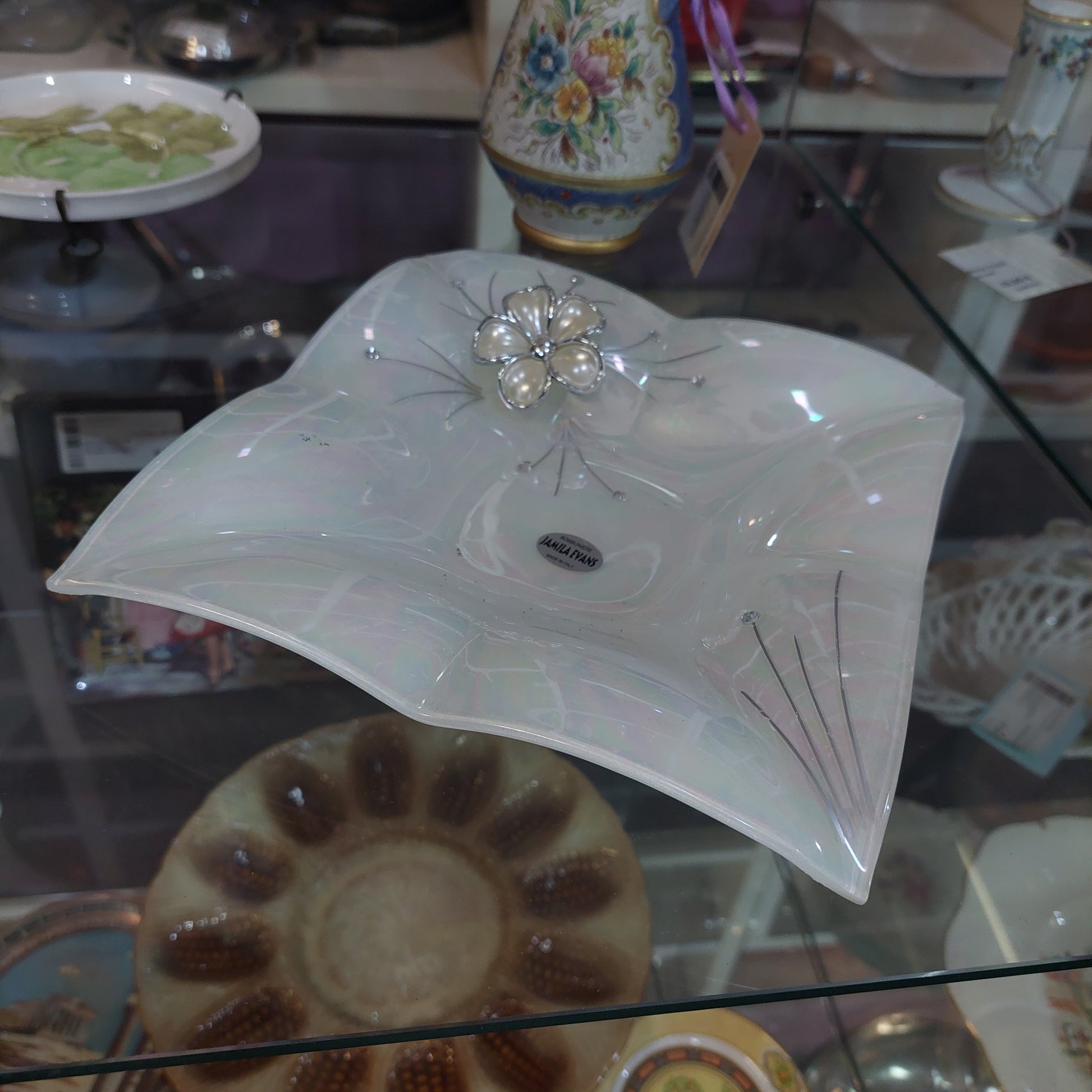svuotatasche vetro di murano Jamila Evans fiore argento cm21x21