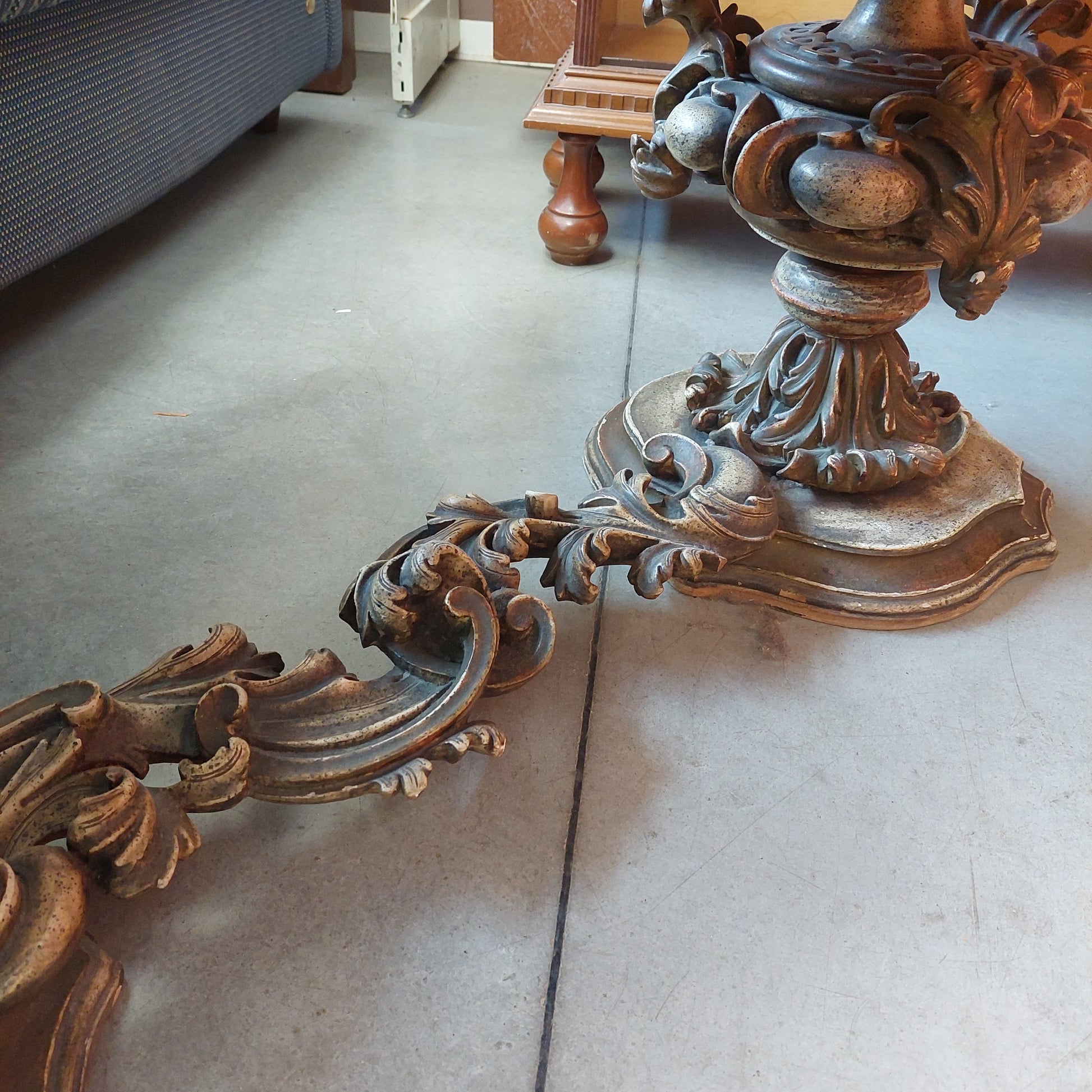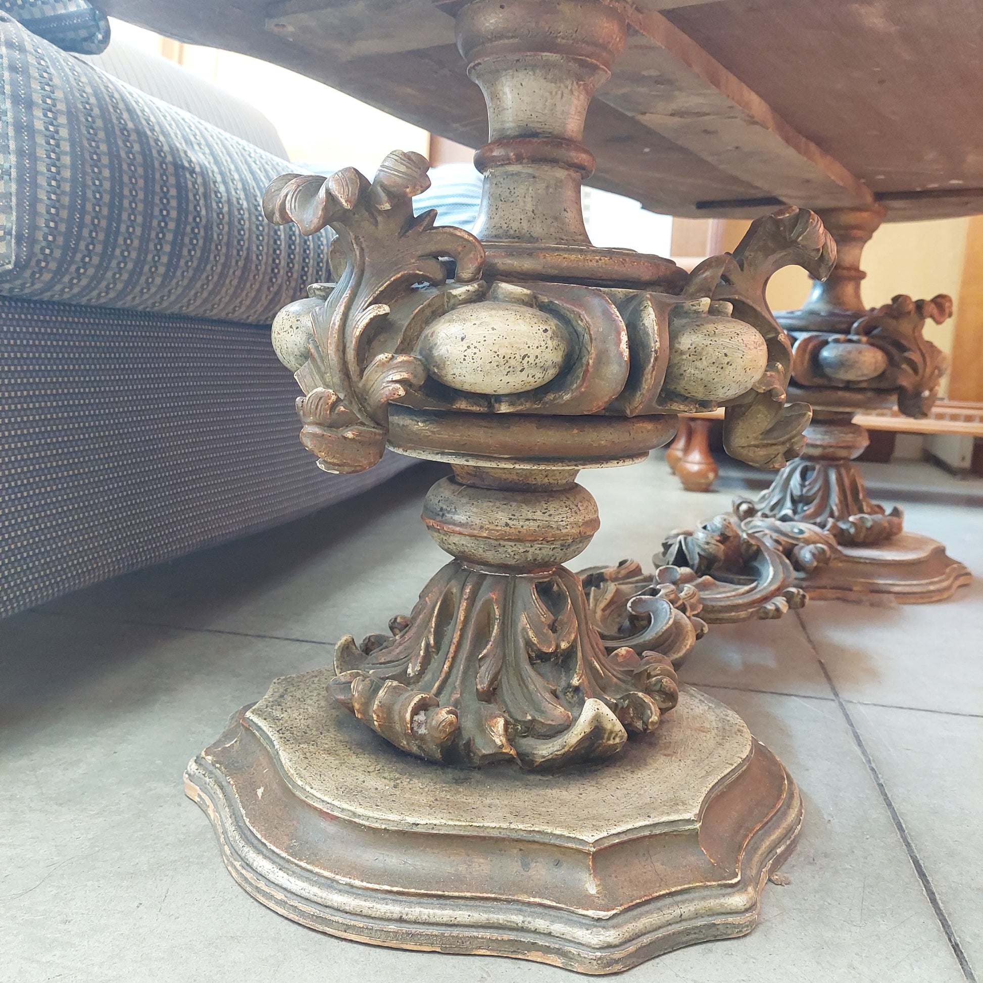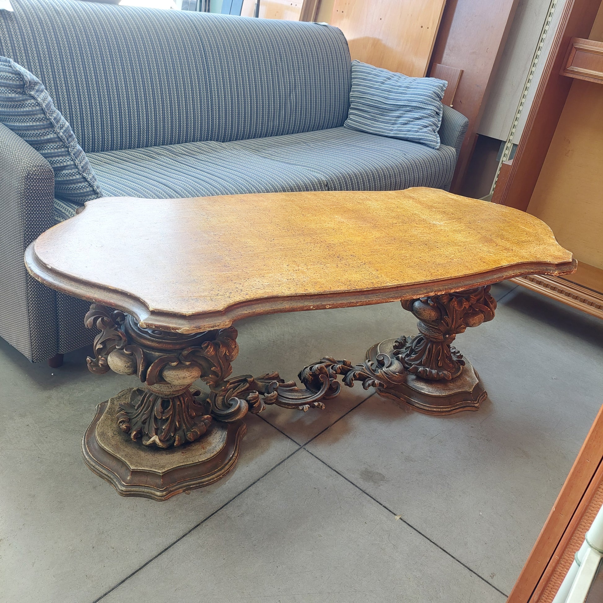 Tavolino Basso Legno Intagliato '800 Cm133x57x51h