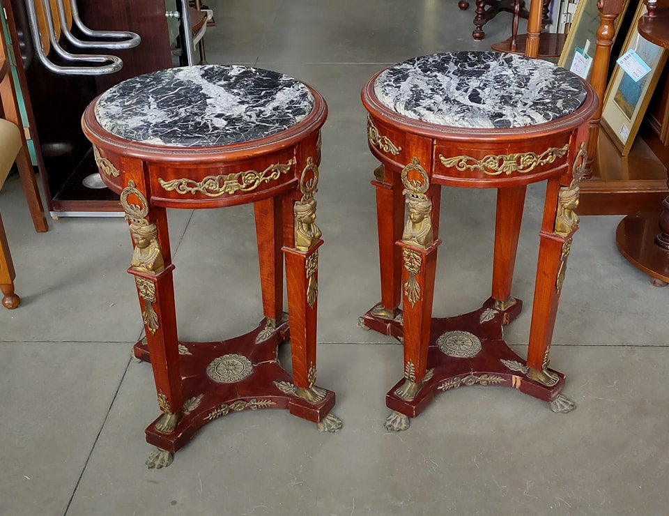Tavolino Legno/marmo Inserti Ottone D46x70h