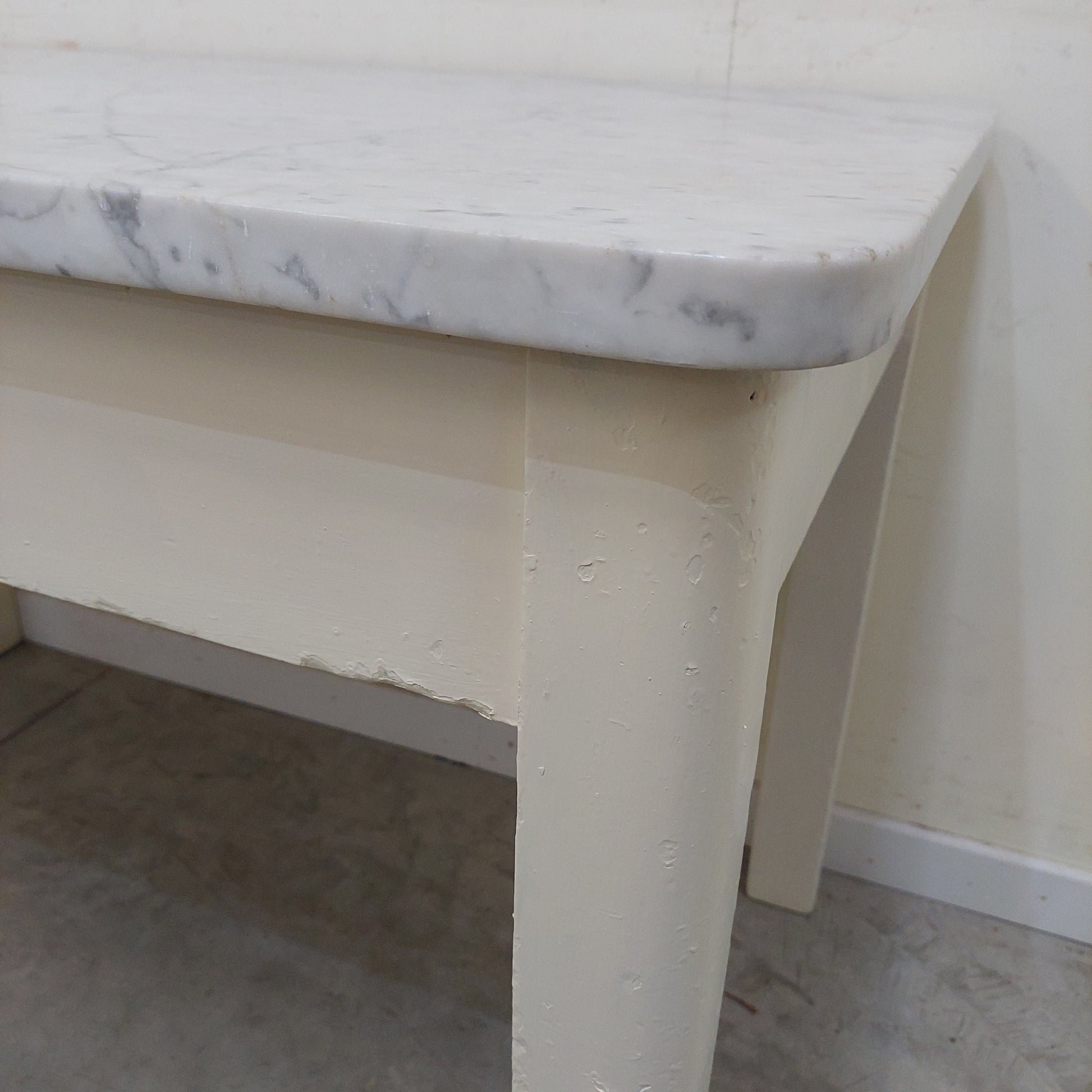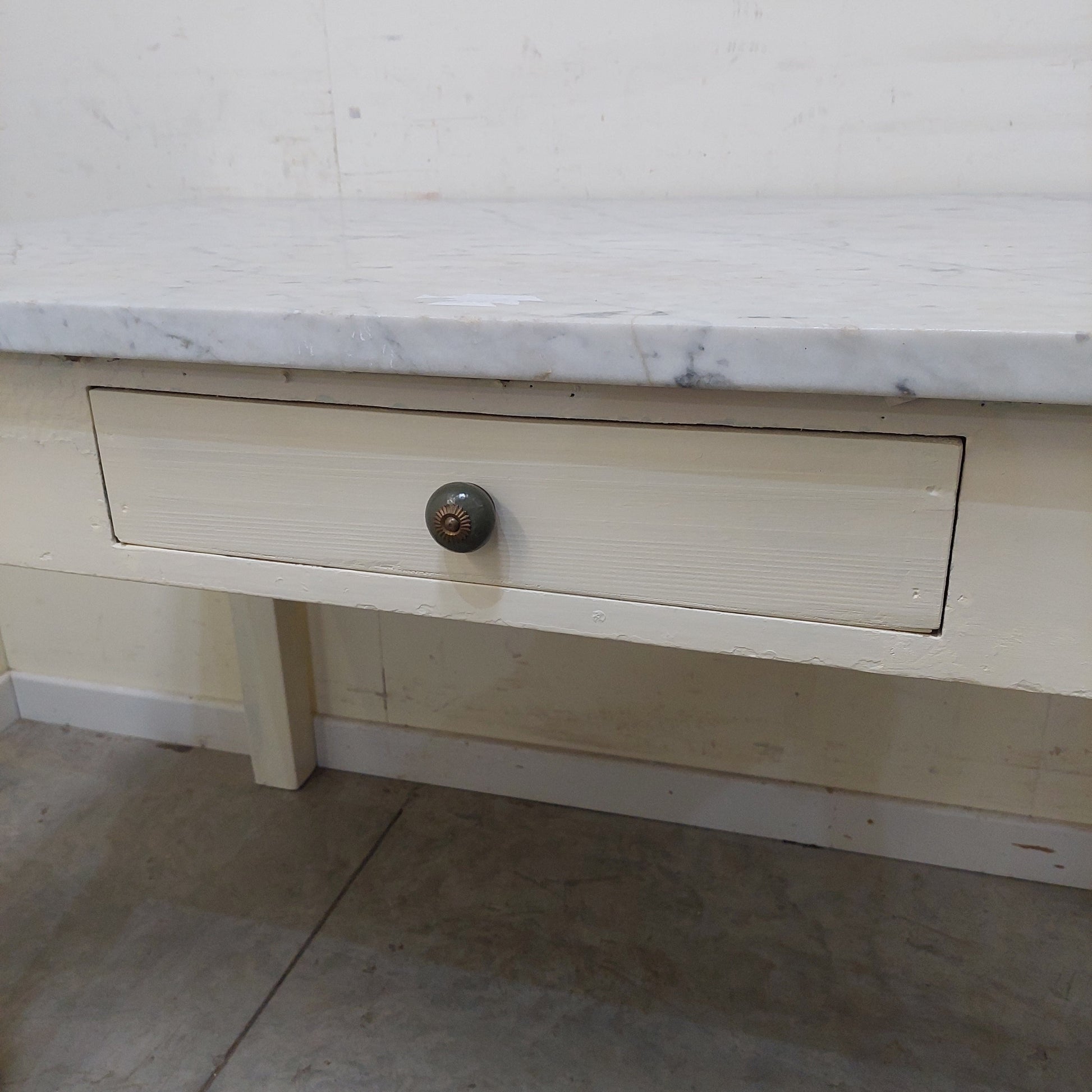 Tavolo Con Marmo Antico Legno Bianco 128x73x81h
