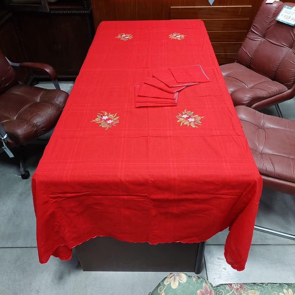 Tovaglia Natalizia Ricamata + 12 Tov Cm240x140
