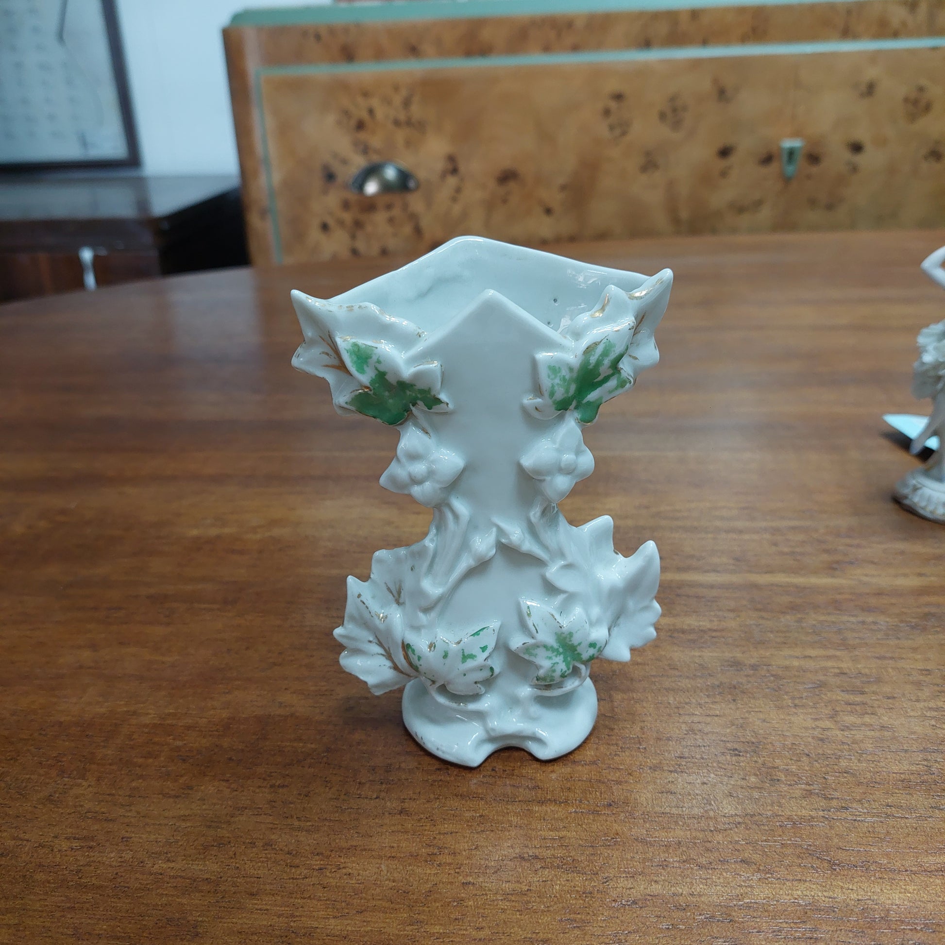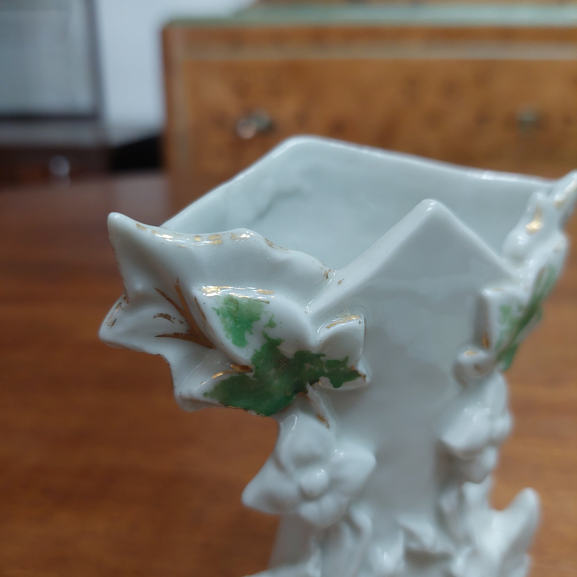 Vasetto vittoriano porcellana antica parigina dipinta a mano raffigurante fiori e foglie di vite cm13h