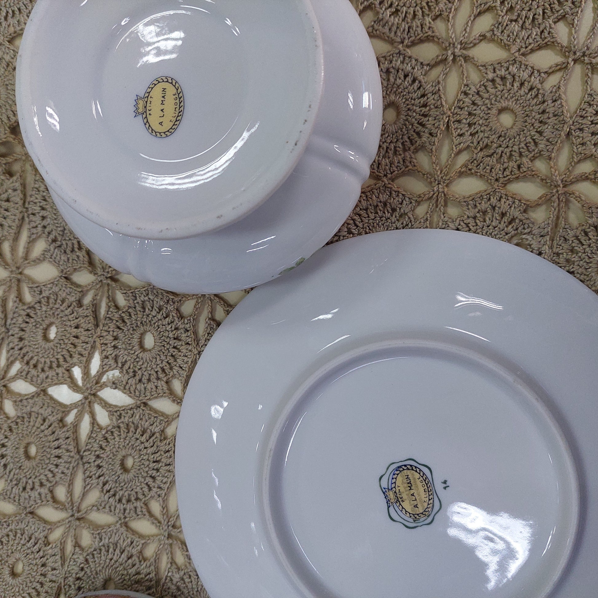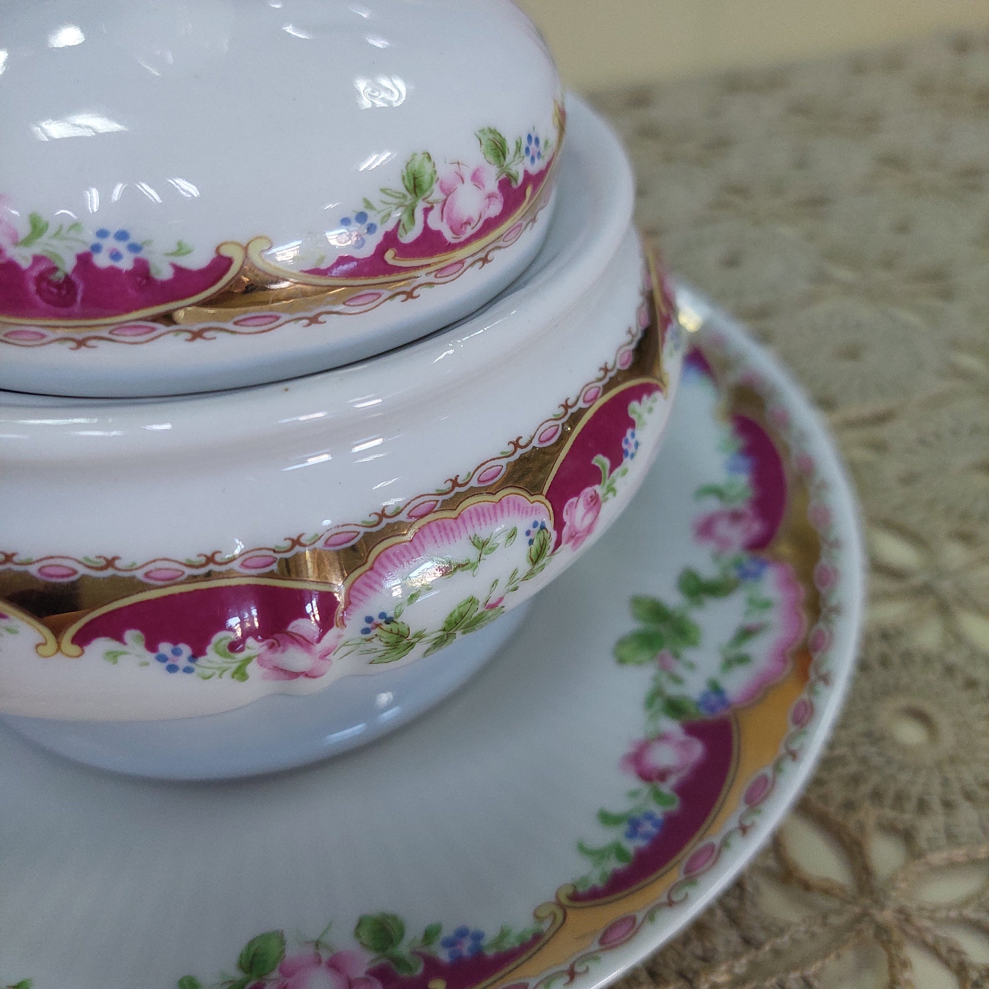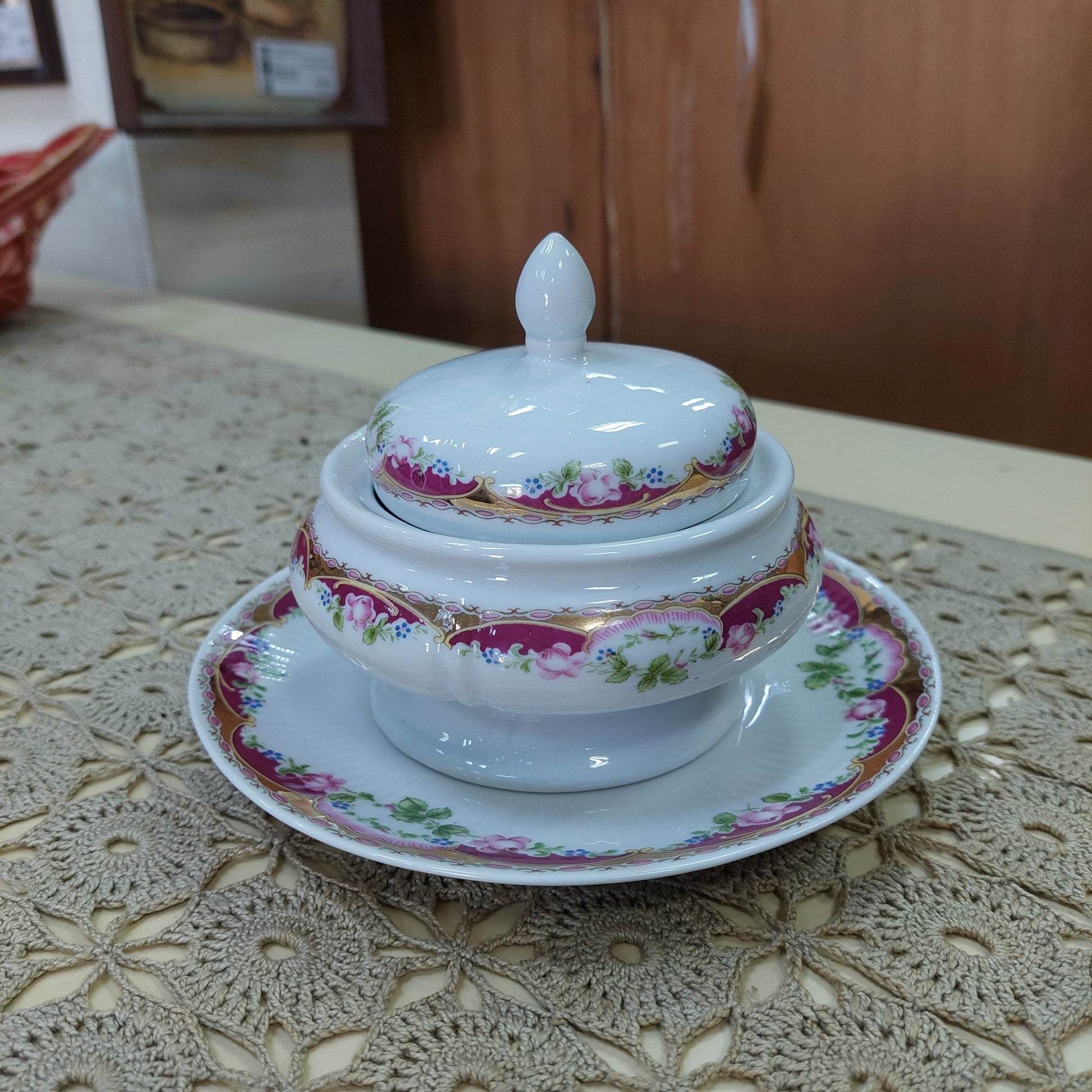 zuccheriera porcellana T. Limoge peint a la main con coperchio e piattino